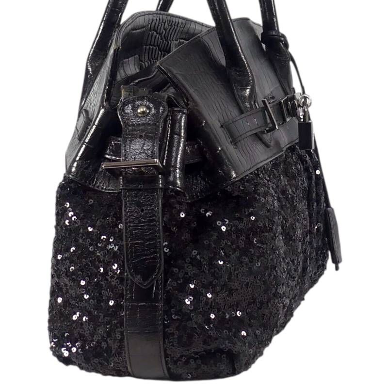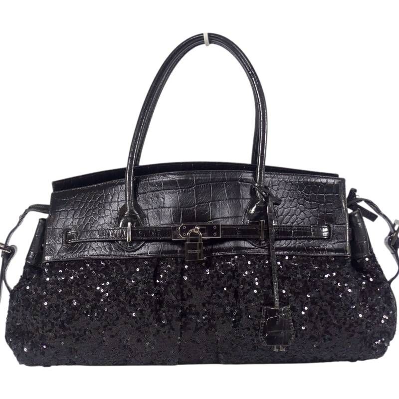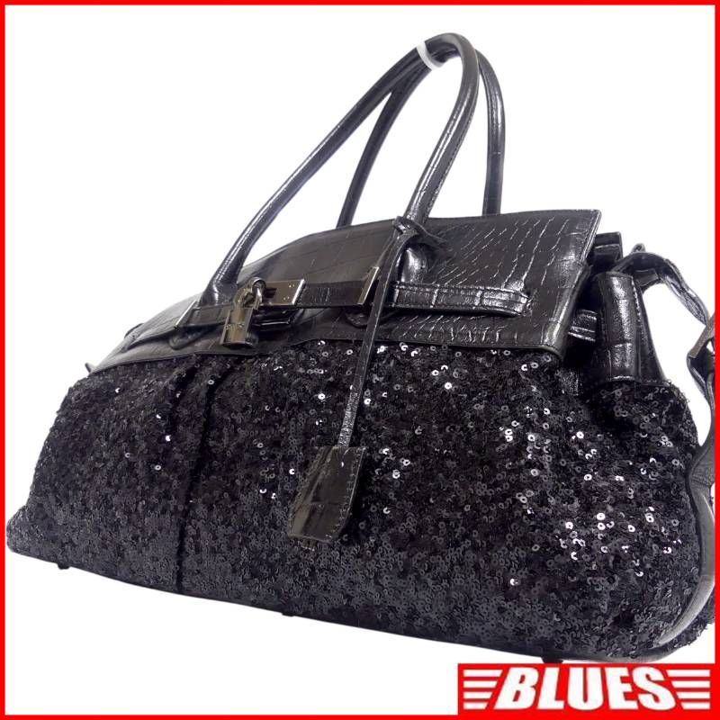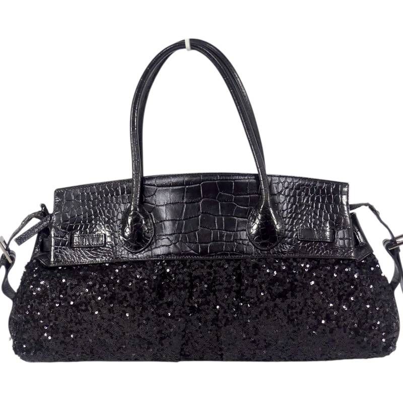 即決★SPECCHIO★ハンドバッグ スペッチオ 黒 レザー スパンコール クロコ型押し レザーコンビ 本革 手提げバッグ 本皮 旅行 カバン 出張