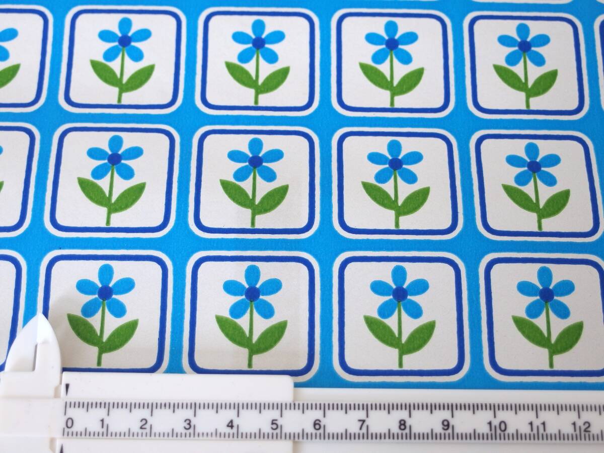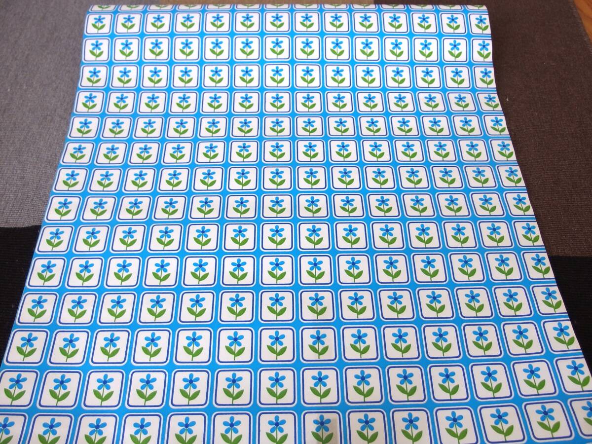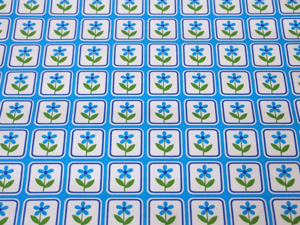 スイス製 ヴィンテージ&レトロ ワックスペーパー,包装紙 (素朴な青い花びらのお花) 50cm×50cm