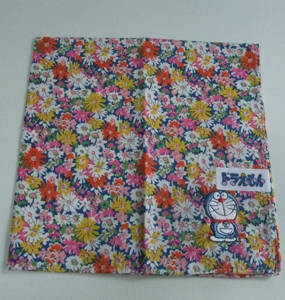 ドラえもん リバティプリント 花柄 ハンカチ 税込定価1.100円 百貨店 日本製 LIBERTY FABRIC ワンポイント刺繍