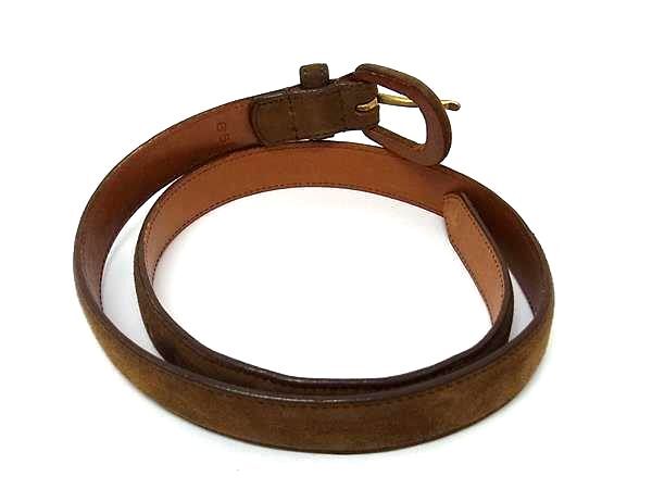 ■美品■ POLO RALPH LAUREN ポロラルフローレン スエード ゴールド金具 ベルト 表記サイズ 65 レディース メンズ ブラウン系 DI9936
