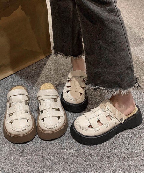 編み込み風のデザインが施されており、カジュアルながらも個性的な印象を与える2WAY厚底サンダル