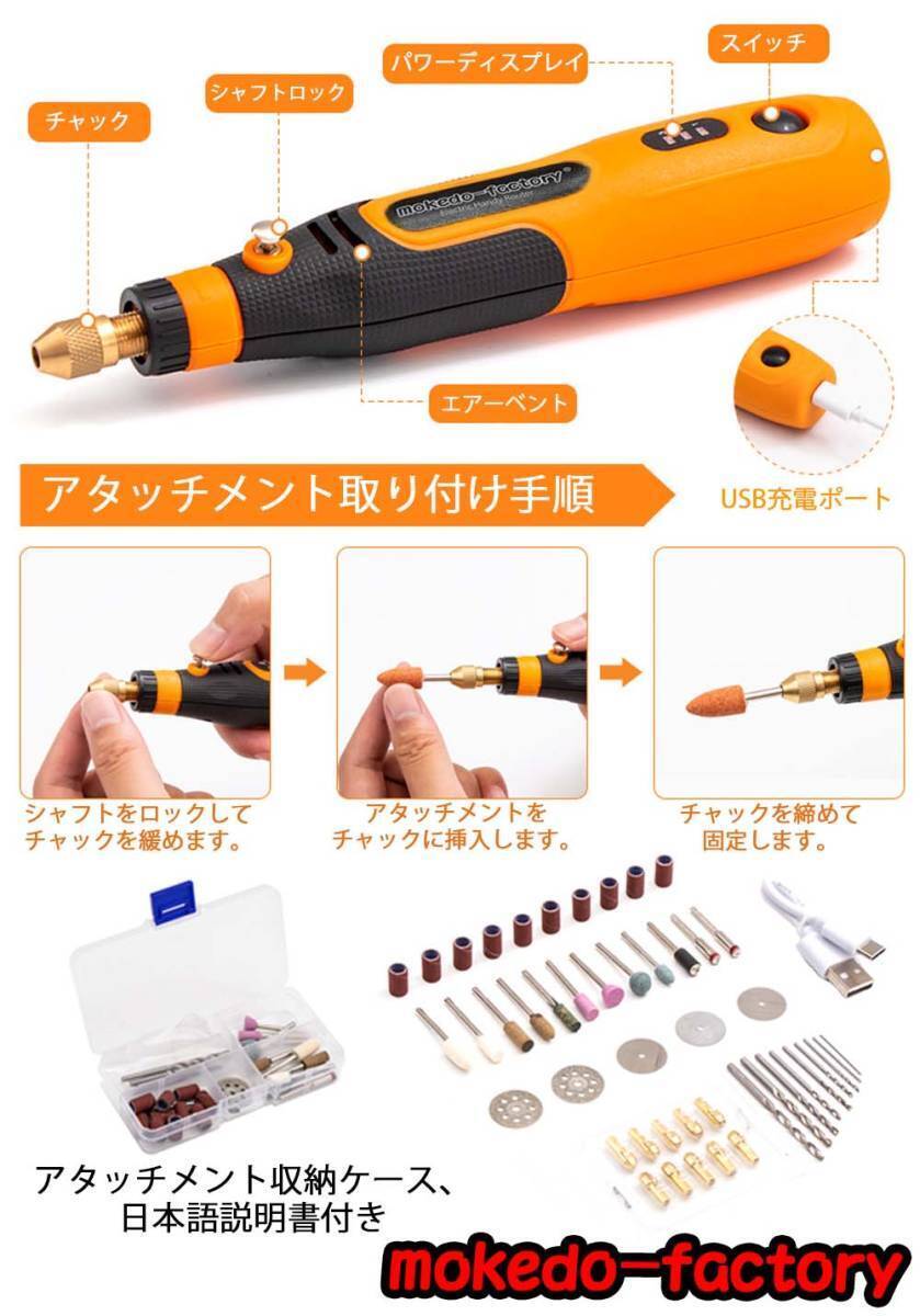ミニルーター ホビーリューター ミニ四駆 カーボン加工 工作用 USB 充電式 モケドーファクトリー 【送料無料!】 動画あり ⑤
