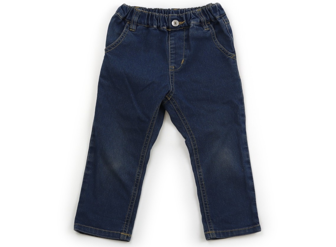 ストレッチデニム素材。ウエストは総ゴムです。膝とヒップが薄汚れています。色褪せ・洗いざらし感があります。