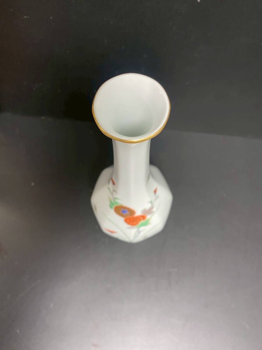 | ★a-177 深川製磁 深川製 花瓶 花びん フラワーベース 一輪挿し 鶴首 9号花生 菊絵 FUKAGAWA ARITA 有田焼 宮内庁御用達 木箱入り 元箱 | ||