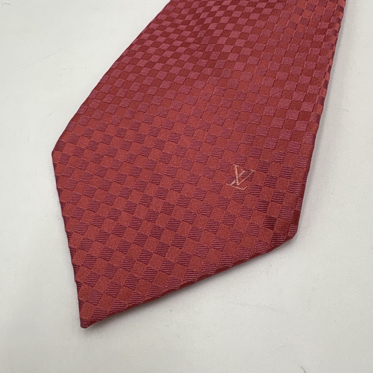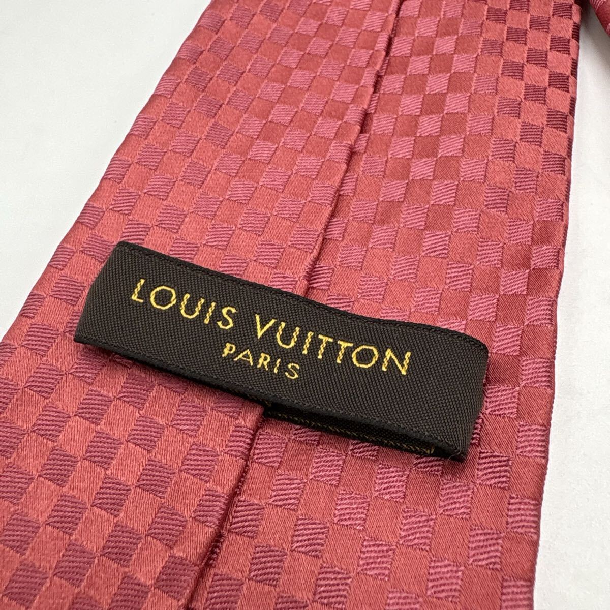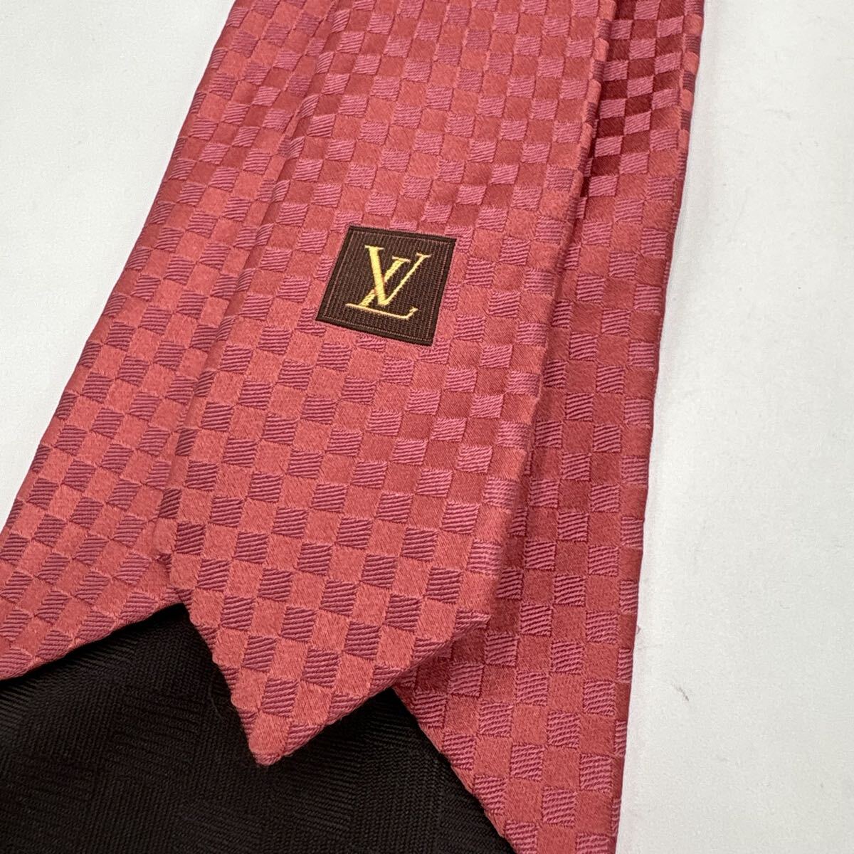 ■ イタリア製 '至高の逸品' 高級感溢れる LOUIS VUITTON ルイヴィトン SILK100% チェック柄 ビジネス ネクタイ 服飾 小物 ピンク系