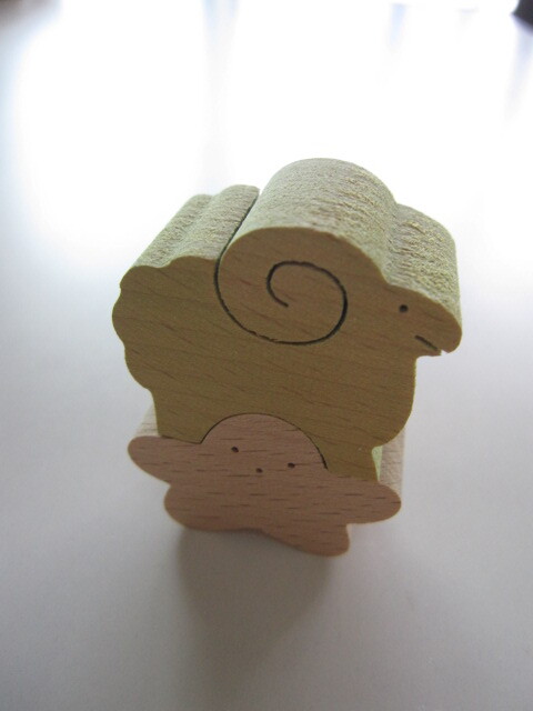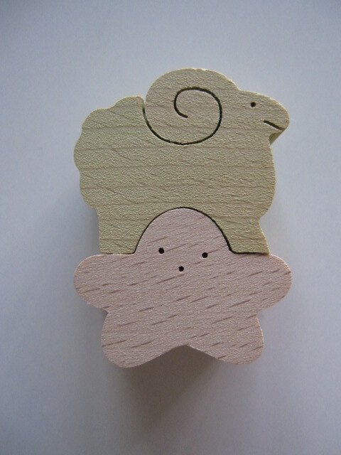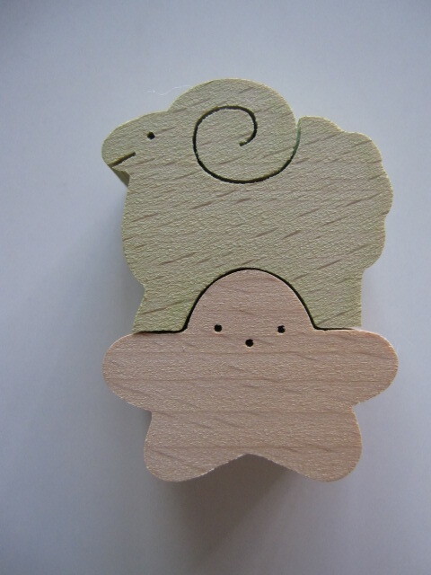 U-PLAN 小黒三郎 星座 組み木 パズル 牡羊座・羊 ひつじとお星さま 重ねても、並べても ひつじ=薄色付き
