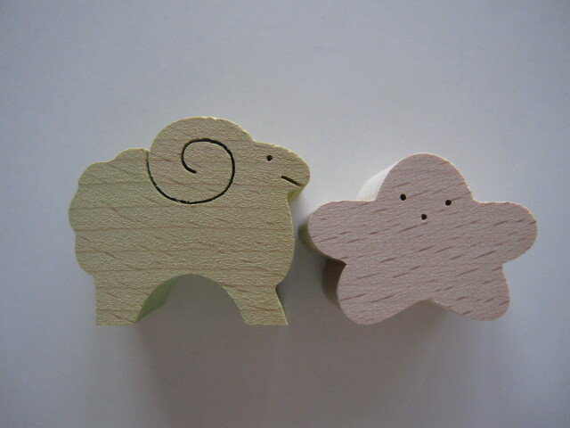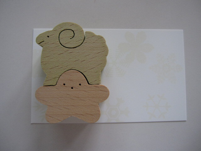 おおよその大きは、星の幅3.4cm、高さ2.5cm、ひつじの幅3.5cm、高さ3cm、重ねた高さは4.7cm。