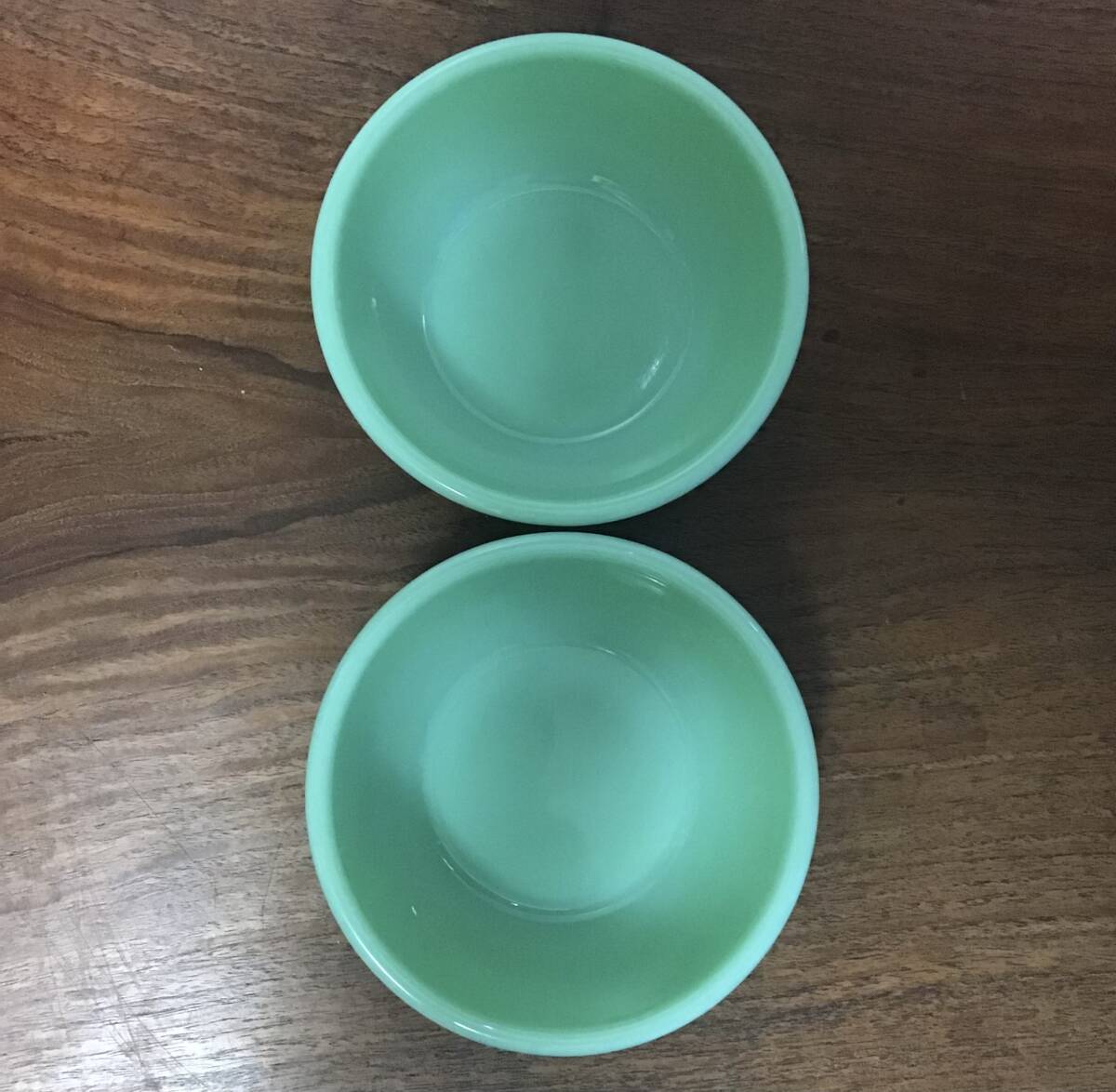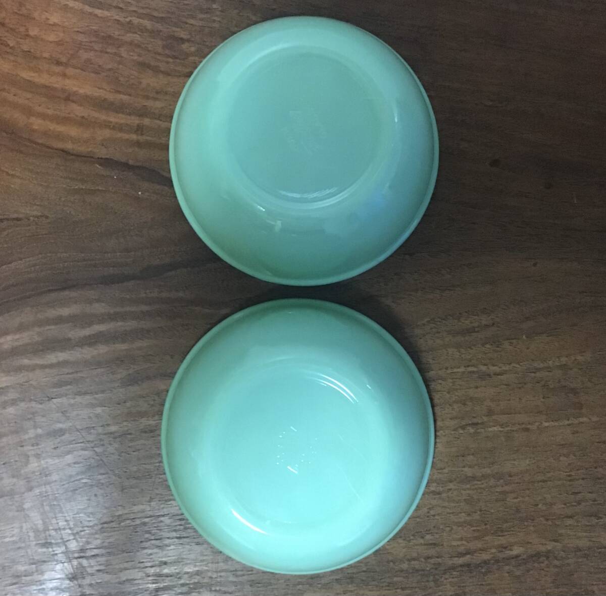 ・Fire-King のジェダイト食器は、リサイクルガラスの混合物を使用して作られています。緑色は、リサイクルされた緑色のガラス瓶を他の添加物とともに溶かして作られました。この工程により、Fire-King のジェダイト特有の緑色が生まれました。使用される緑色ガラスの量が異なるため、緑色の色合いが異なり、ガラスに渦巻き状の模様が見られる場合もあります。