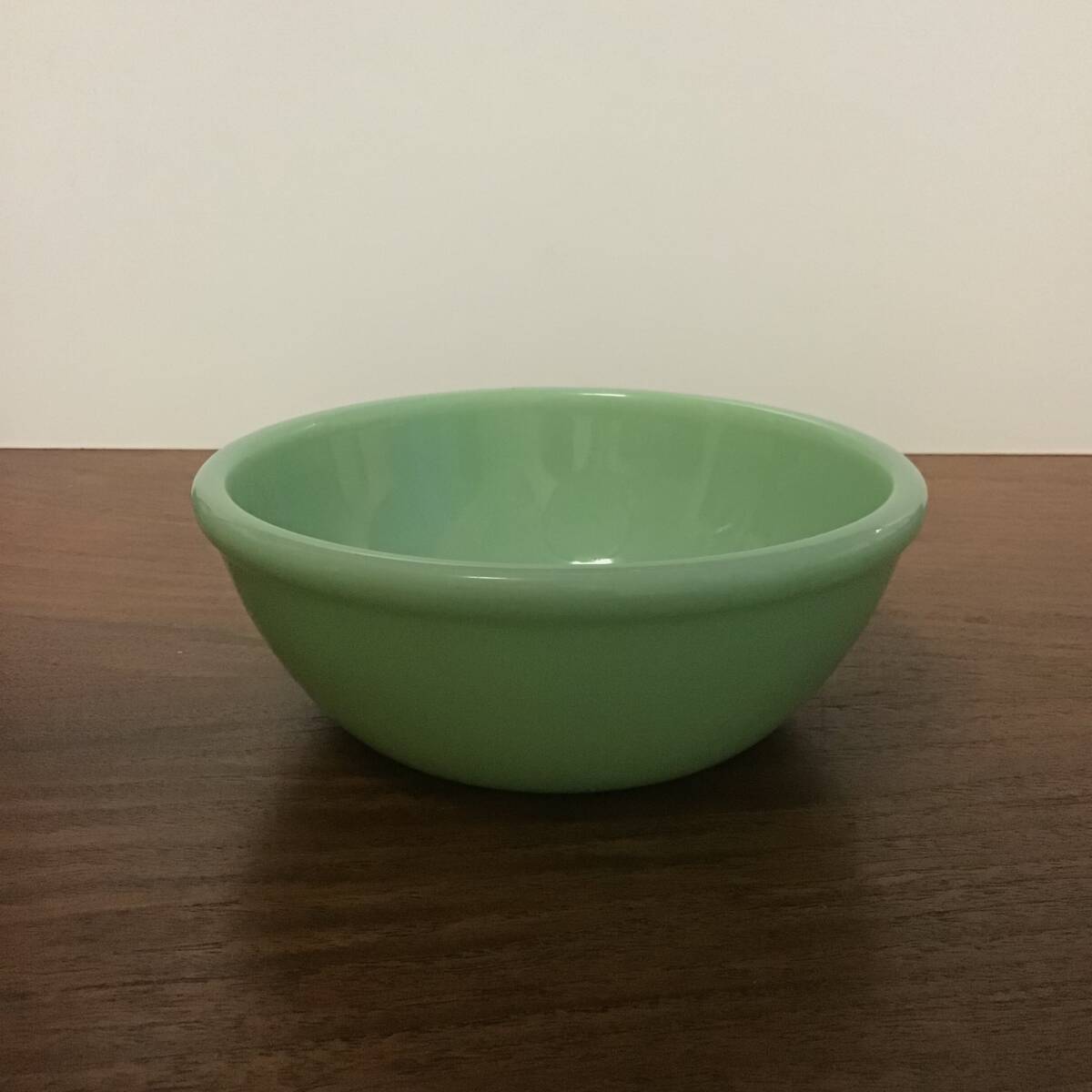 この Fire-King Restaurant Ware G-300 15 oz ジェダイト ビーズ リム ボウルは、コレクターに人気の高い魅力的なアイテムです。