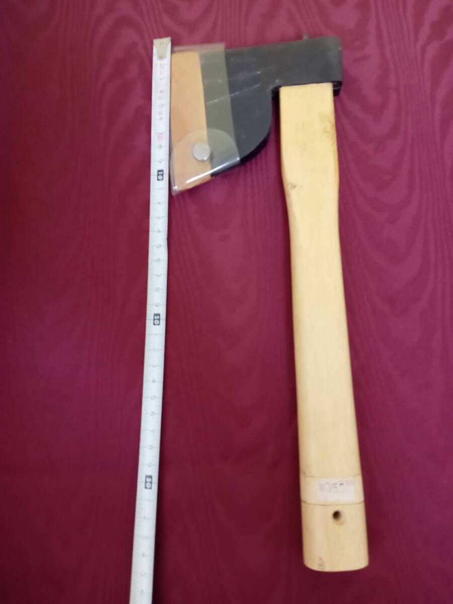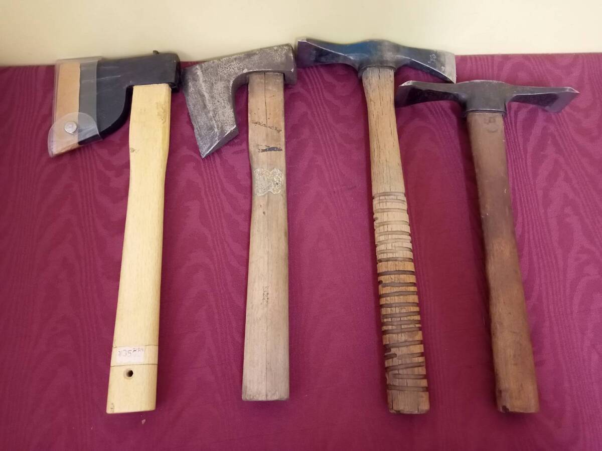 手斧の一本は刃に欠けやサビなどが強く出ています。