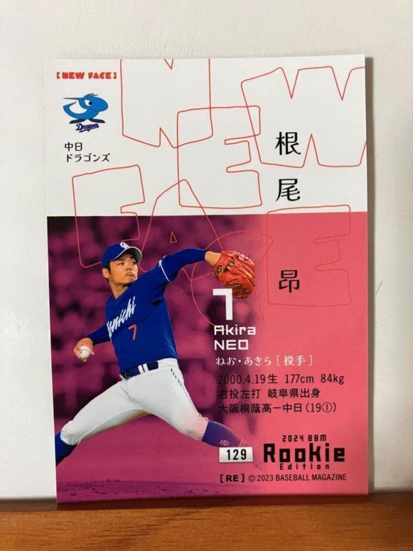 【2024 BBM ルーキーエディション】129根尾昂(中日ドラゴンズ)レギュラーカード