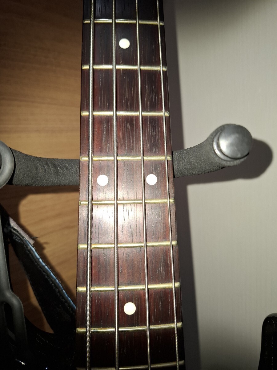 ペグの裏に金属の曇り等はありますが、大きな傷もありません。フレットもしっかりと残っており、ロッドも左右余裕ありです。