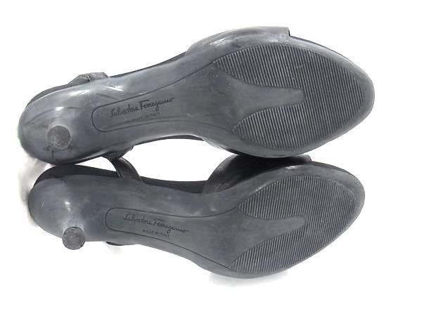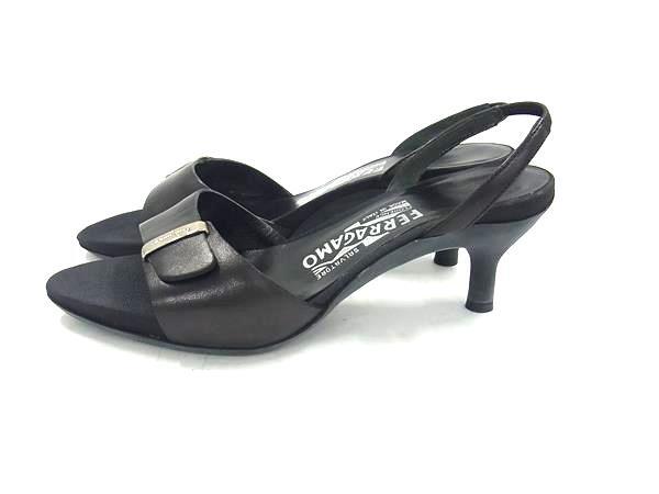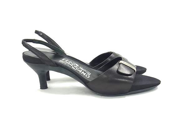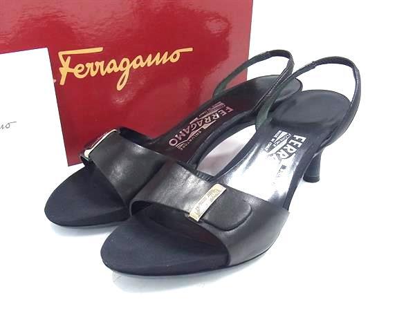 Salvatore Ferragamo フェラガモ レザー ヒール サンダル 表記サイズ 5 ( 約22.5cm) 靴 シューズ レディース ブラック系 DJ8189
