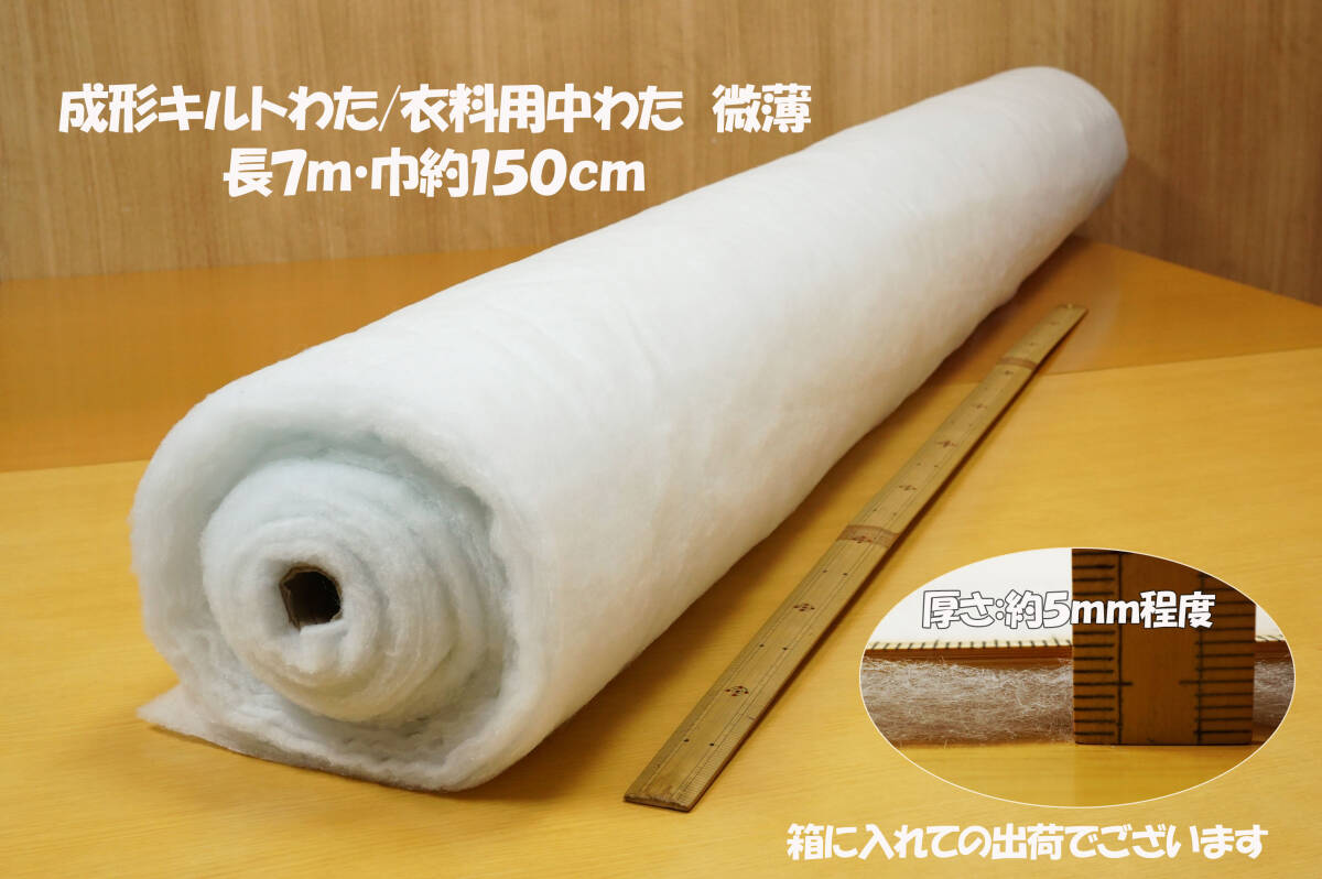 長7m・巾約150cm、「アウター保温材・キルティング加工材」などから、手芸わた代用として「ふっくらバッグ・雑貨小物・クッション詰めわた・ぬいぐるみ詰めわた・つるし雛・緩衝材・ペットベッド中わた」などにも是非、ご利用ください。