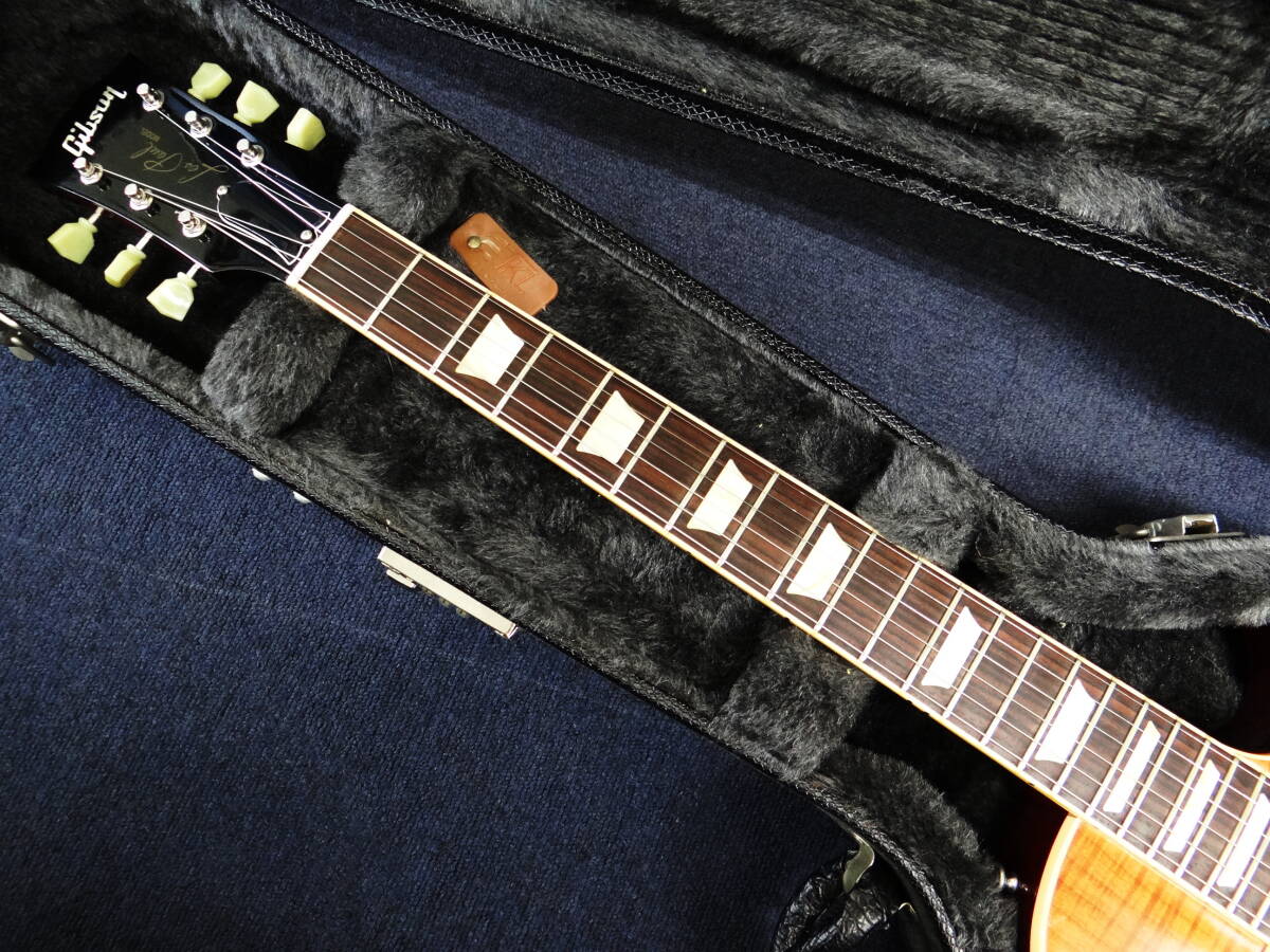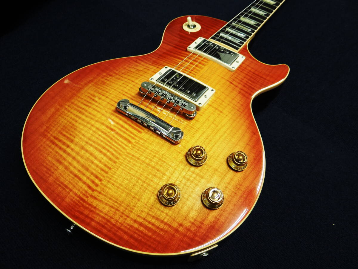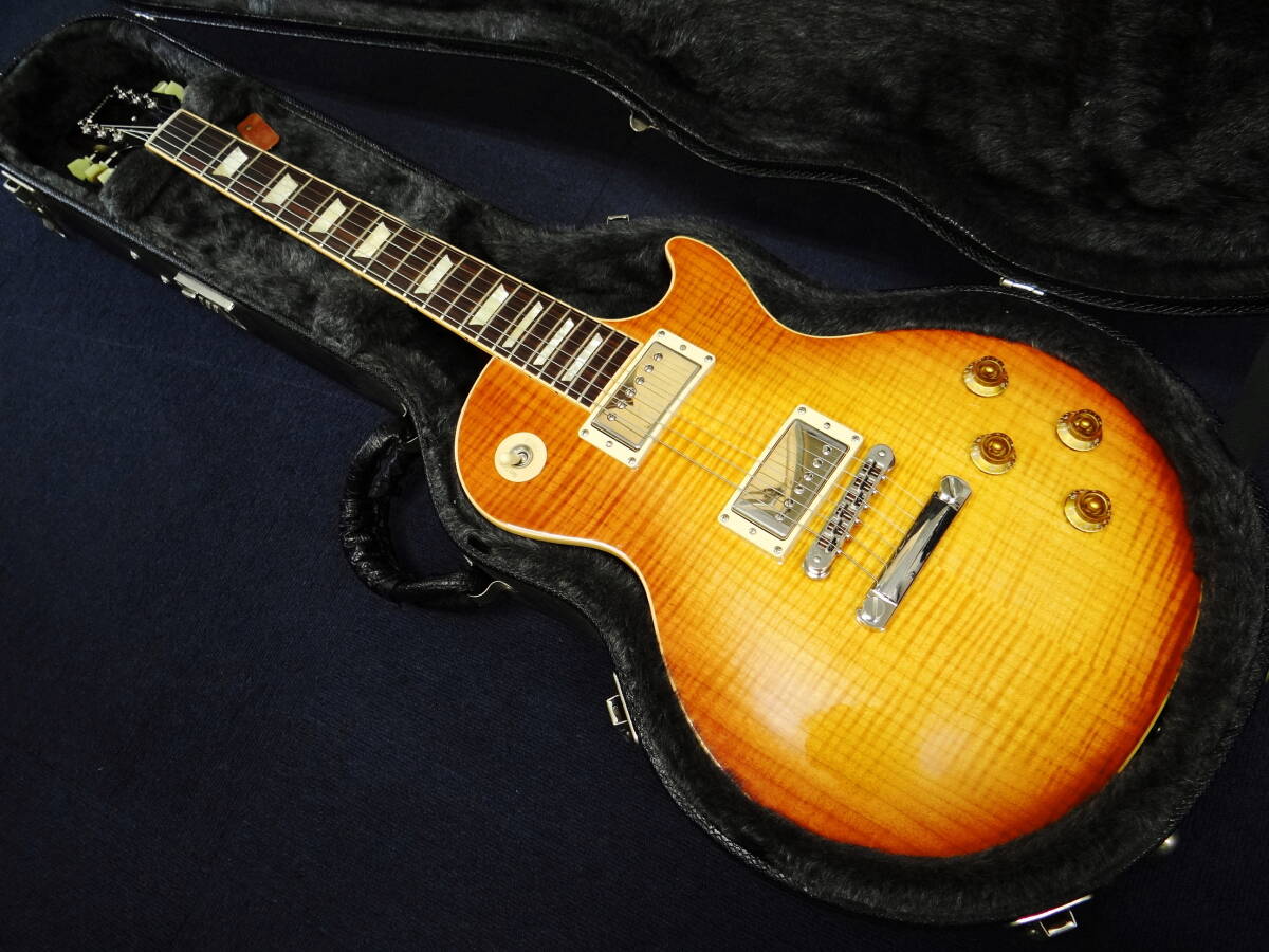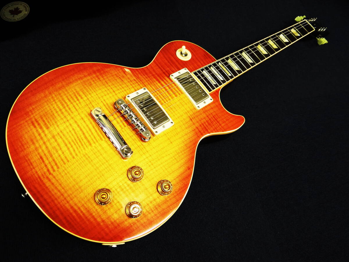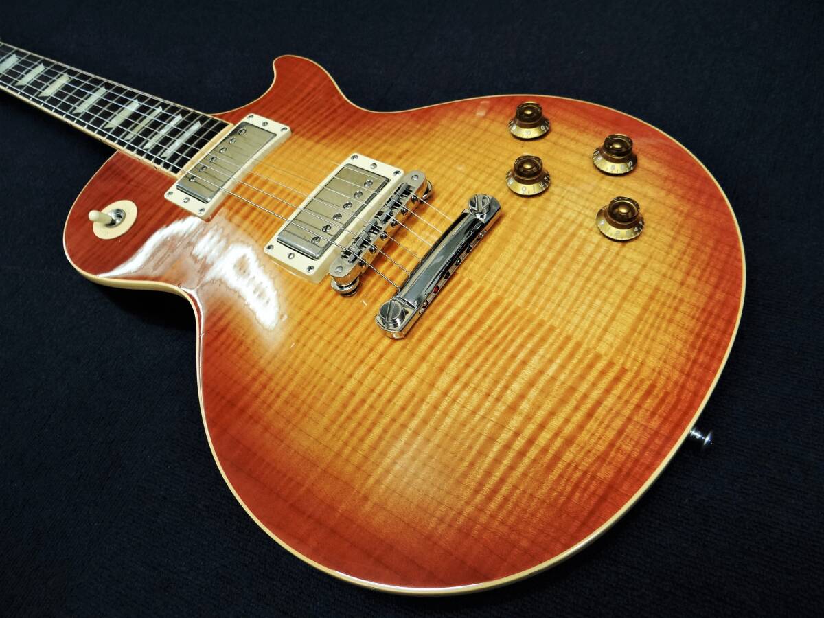 50's スタイルのネックグリップを採用したレスポールスタンダードです。がっしりとした握り心地の”Round Shape”採用により、粘り強いサスティーンを生み出します。ボディトップは、2002年までのレスポールスタンダードとの差別化のためAAグレードのフィギュアドメイプルトップが標準採用。トップの杢目を見せる為にピックガードは付属品となり、本体にはピックガード穴が開いていないのも特徴です。 |