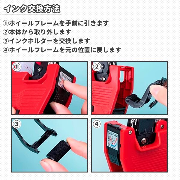 業務用 ハンドラベラー ラベル 21巻 インク 2個 赤色 レッド 値札 プライスタグ タグ 店舗 用品 日付 印字 価格表示 管理