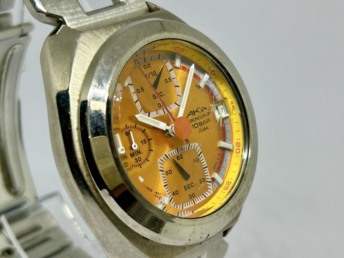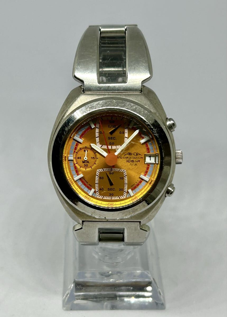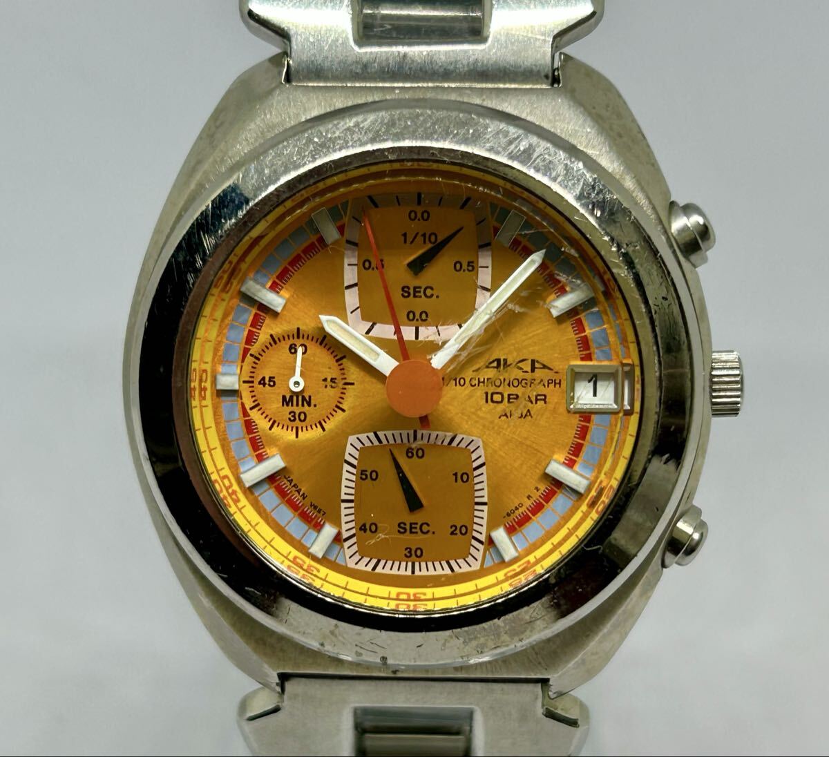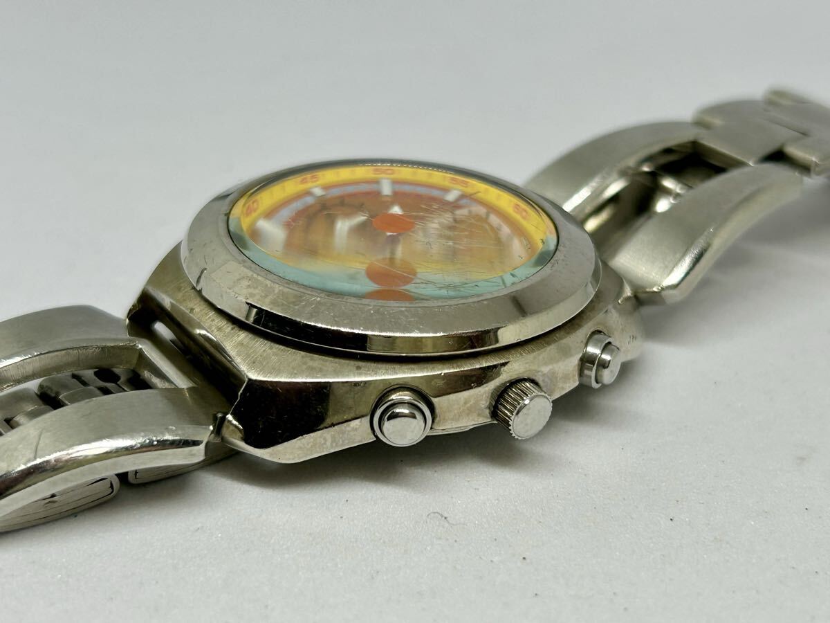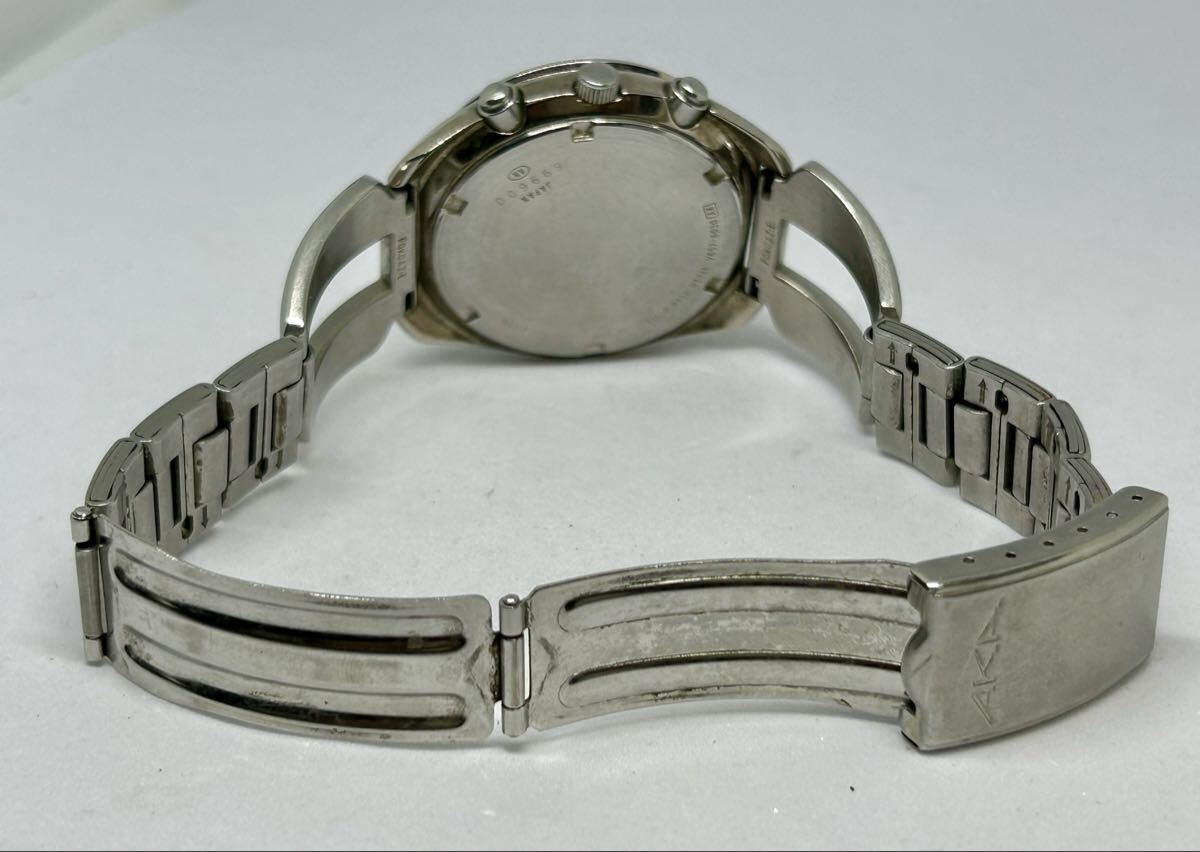 使用感ございます。使用、保管によるキズ汚れ等ございます。風防にキズあり。電池切れによるのか、動作していません。状態は写真にてご確認お願いします。完璧を求める方はお控えください。