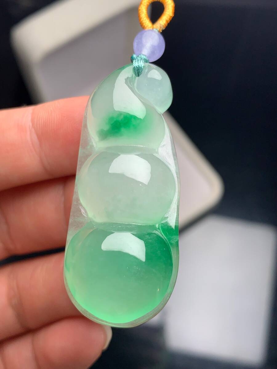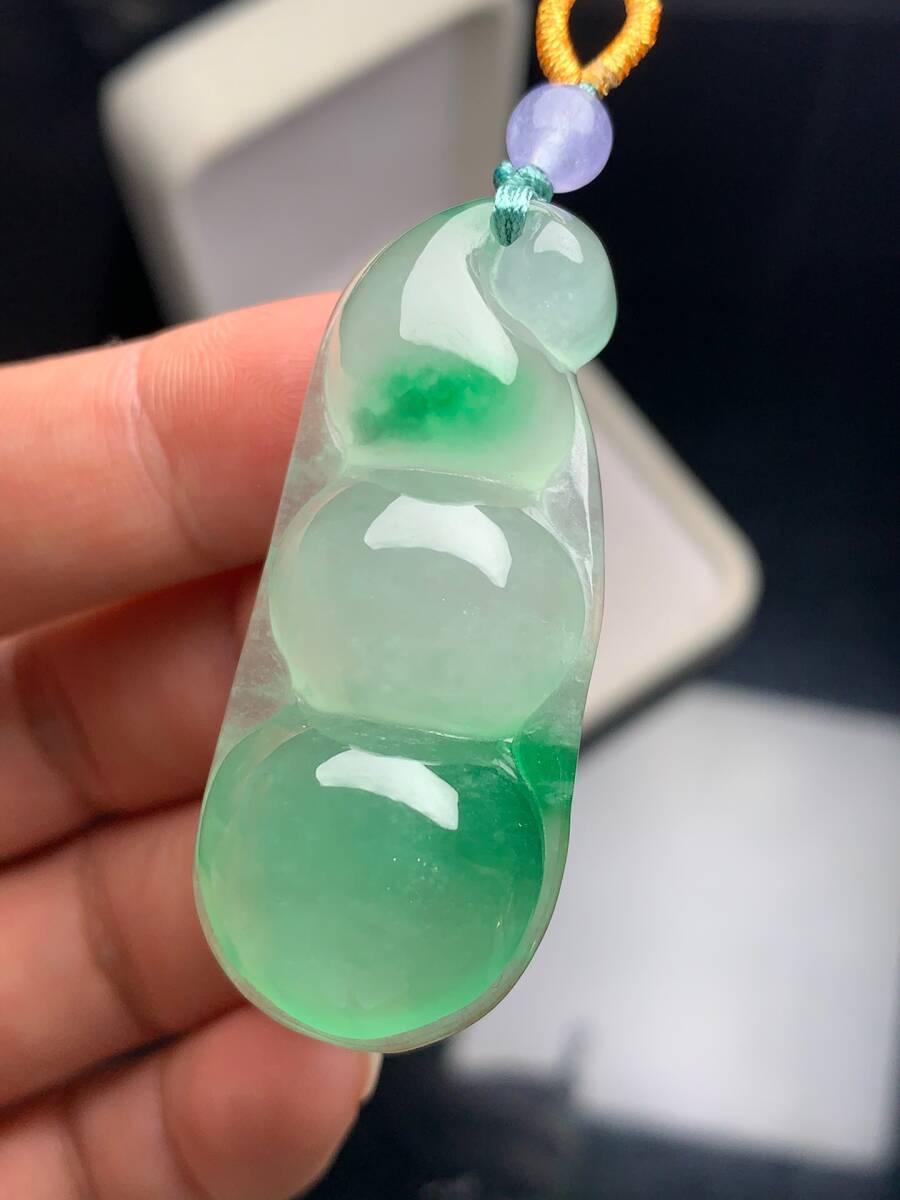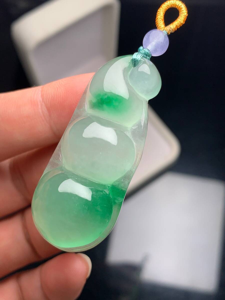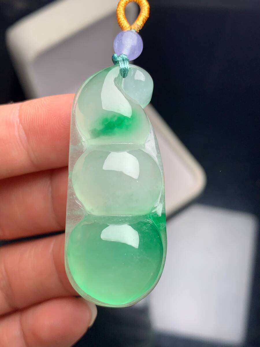 ▽鴻▽ 翡翠製 細密彫 福豆ペンダント 根付 裝身具 古賞物 古董品 時代物 稀少珍品 中国古玩 中国古美術