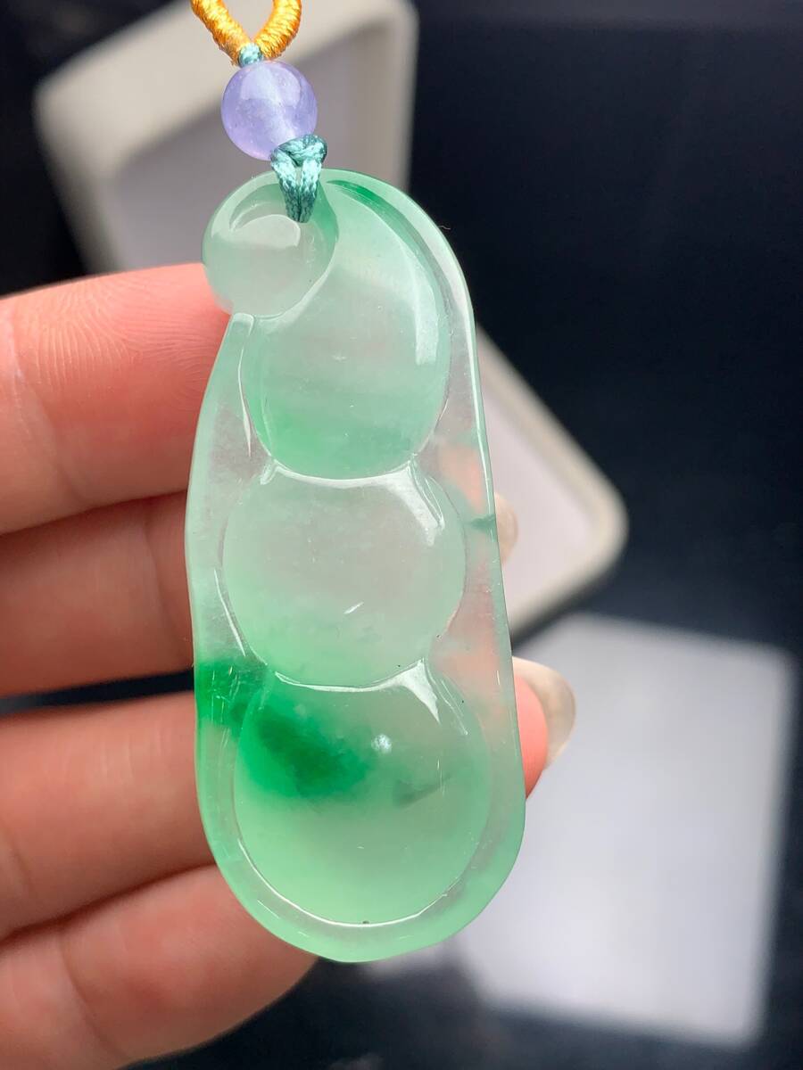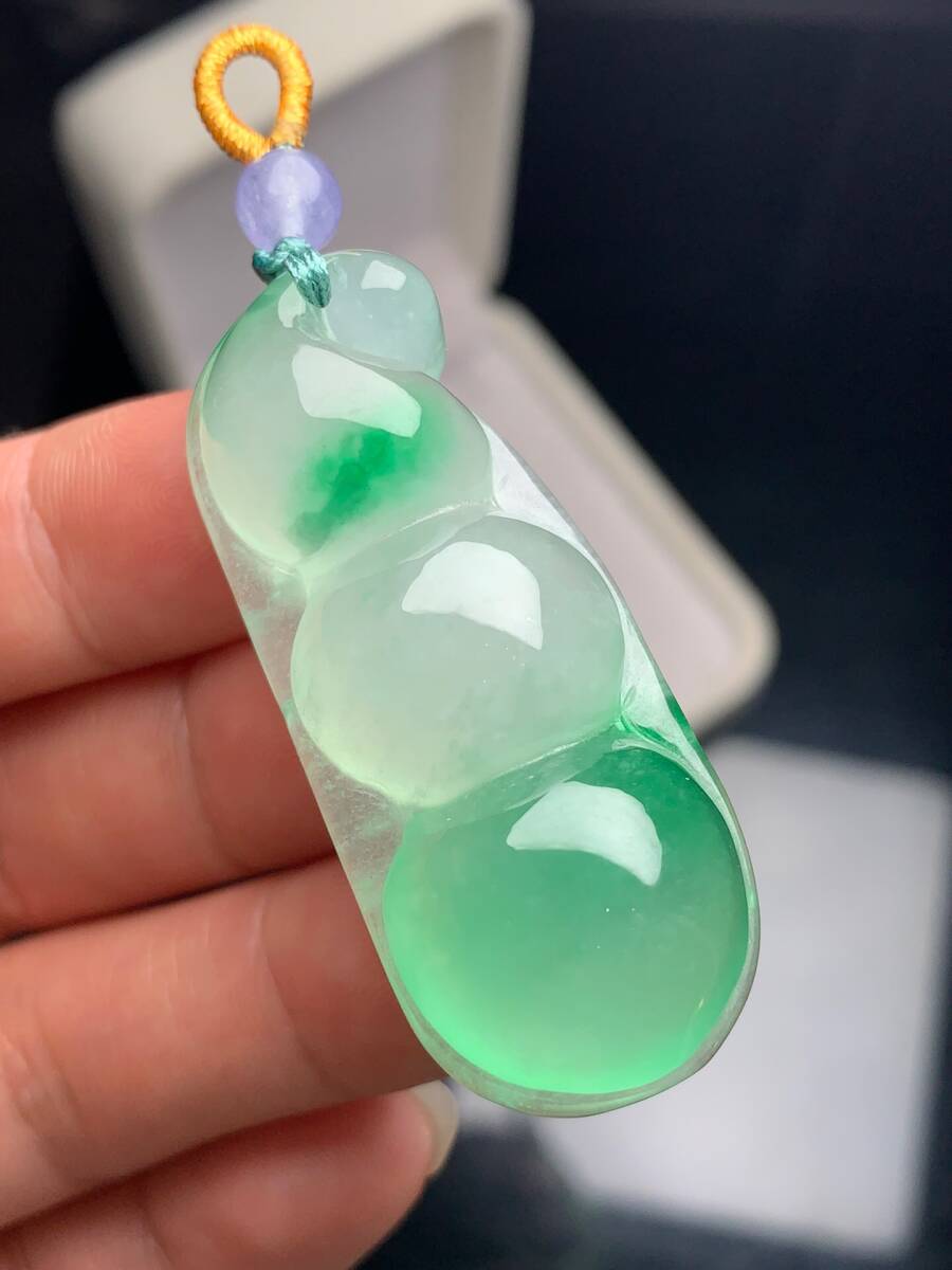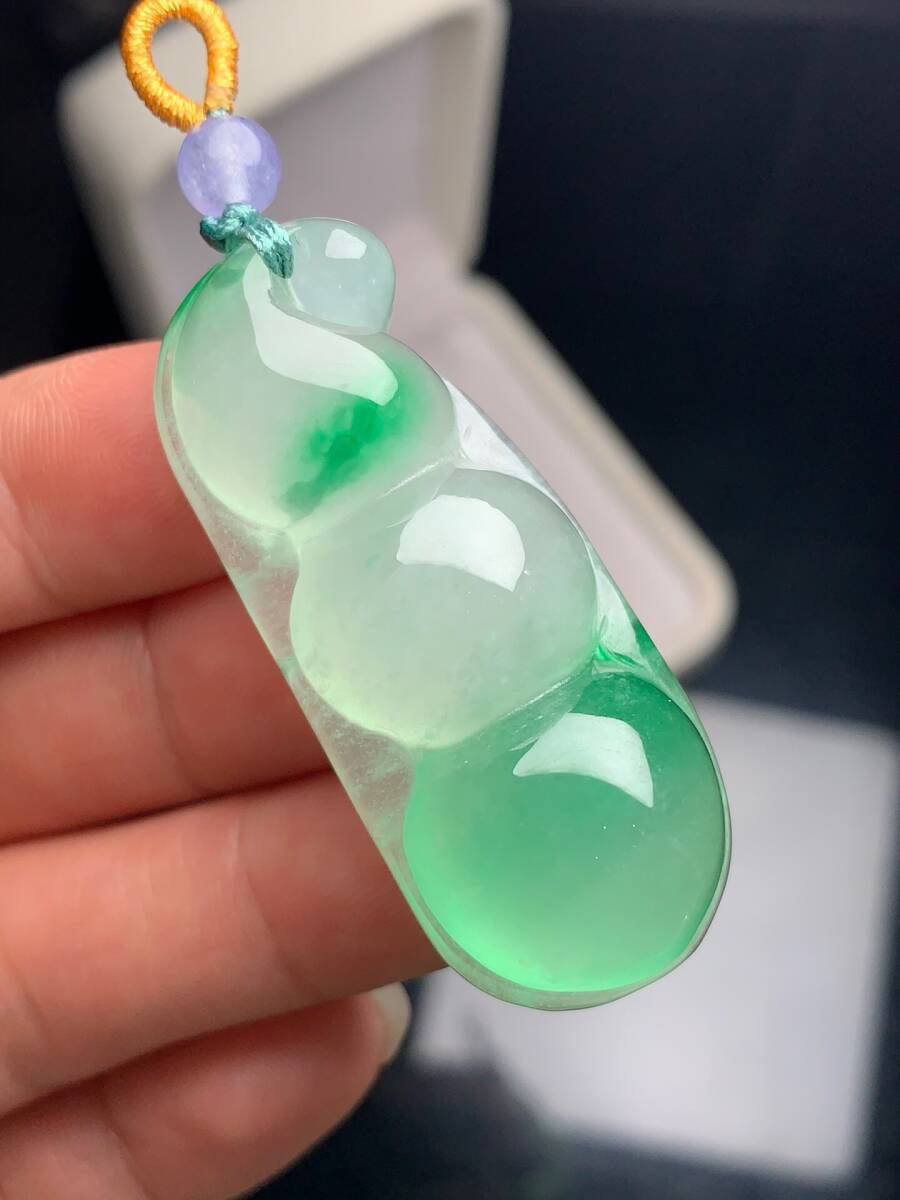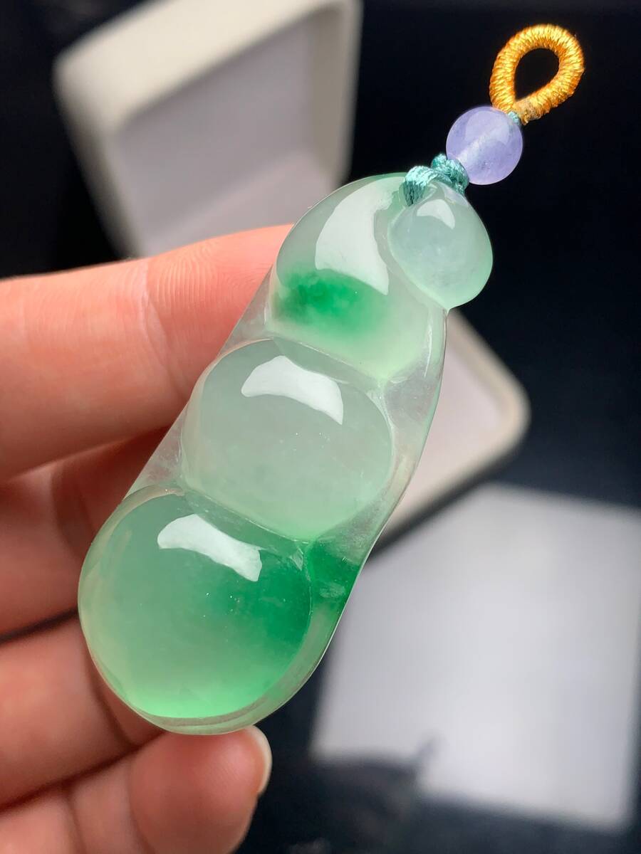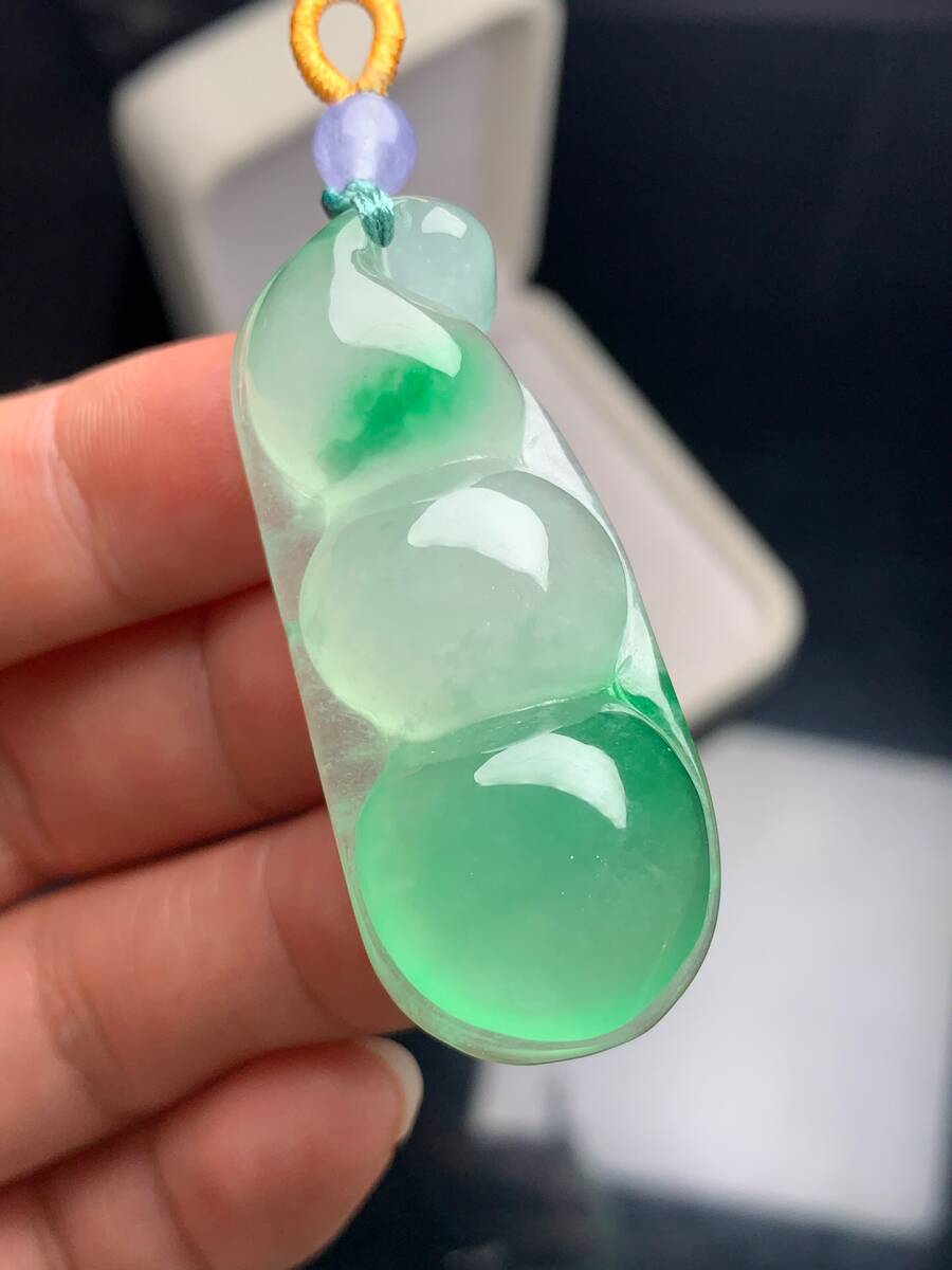 ▽鴻▽ 翡翠製 細密彫 福豆ペンダント 根付 裝身具 古賞物 古董品 時代物 稀少珍品 中国古玩 中国古美術