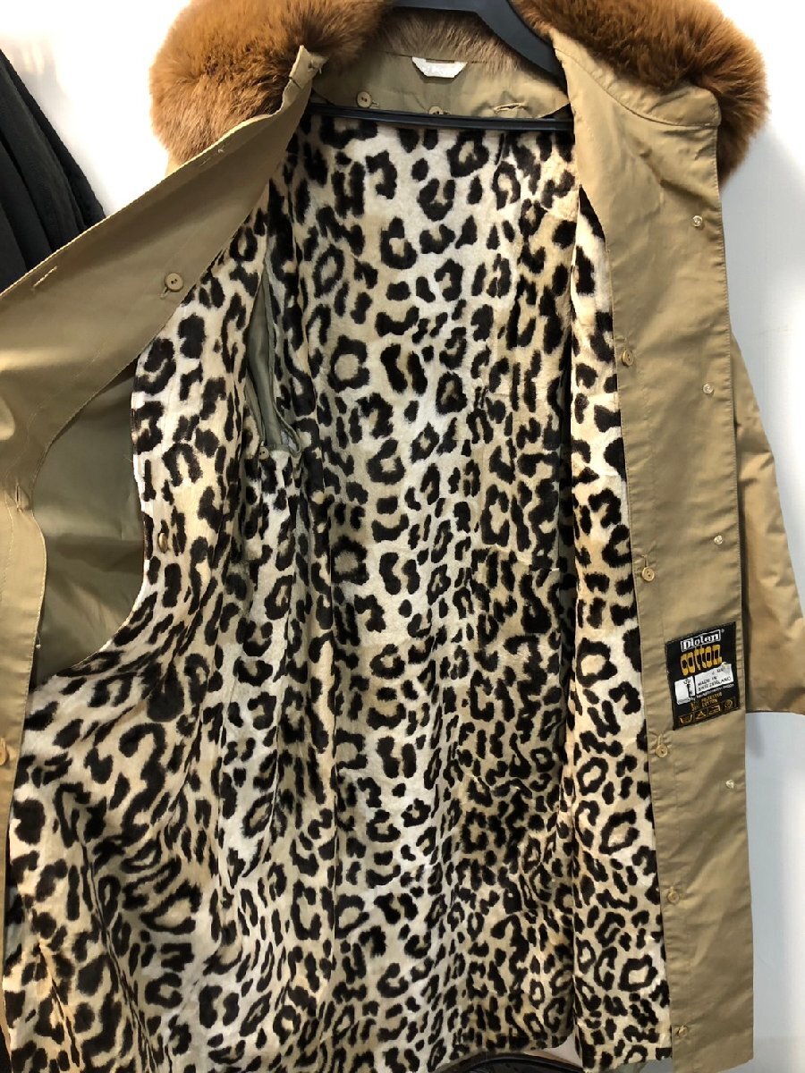 ◆Diolen cotton ダイオレンコットン MANOIR コート 13号 ベージュ系 レディース ライナー付 ファー付 ヒョウ柄 中古◆15785★