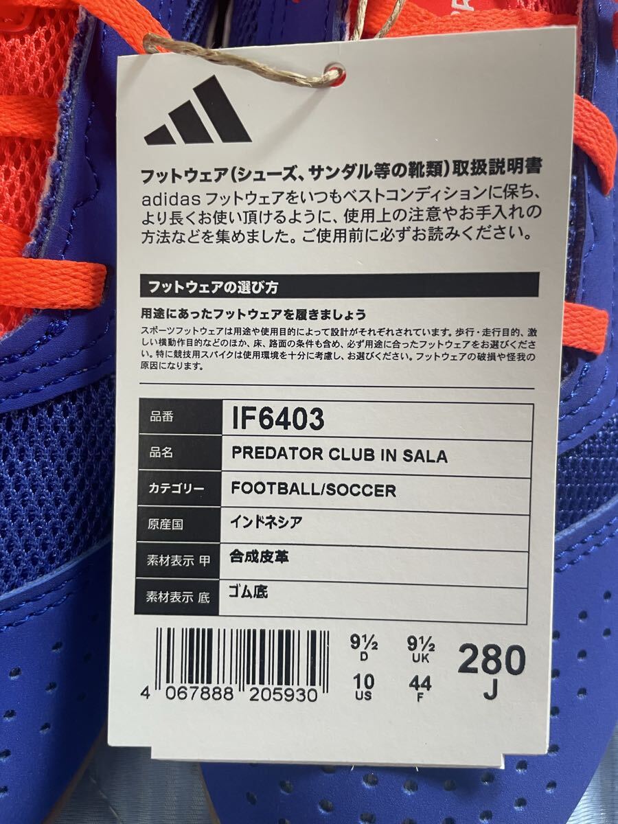 送料無料 新品 未使用 adidas アディダス プレデター CLUB IN SALA IF6403 メンズシューズ 28.0㎝ になります。
