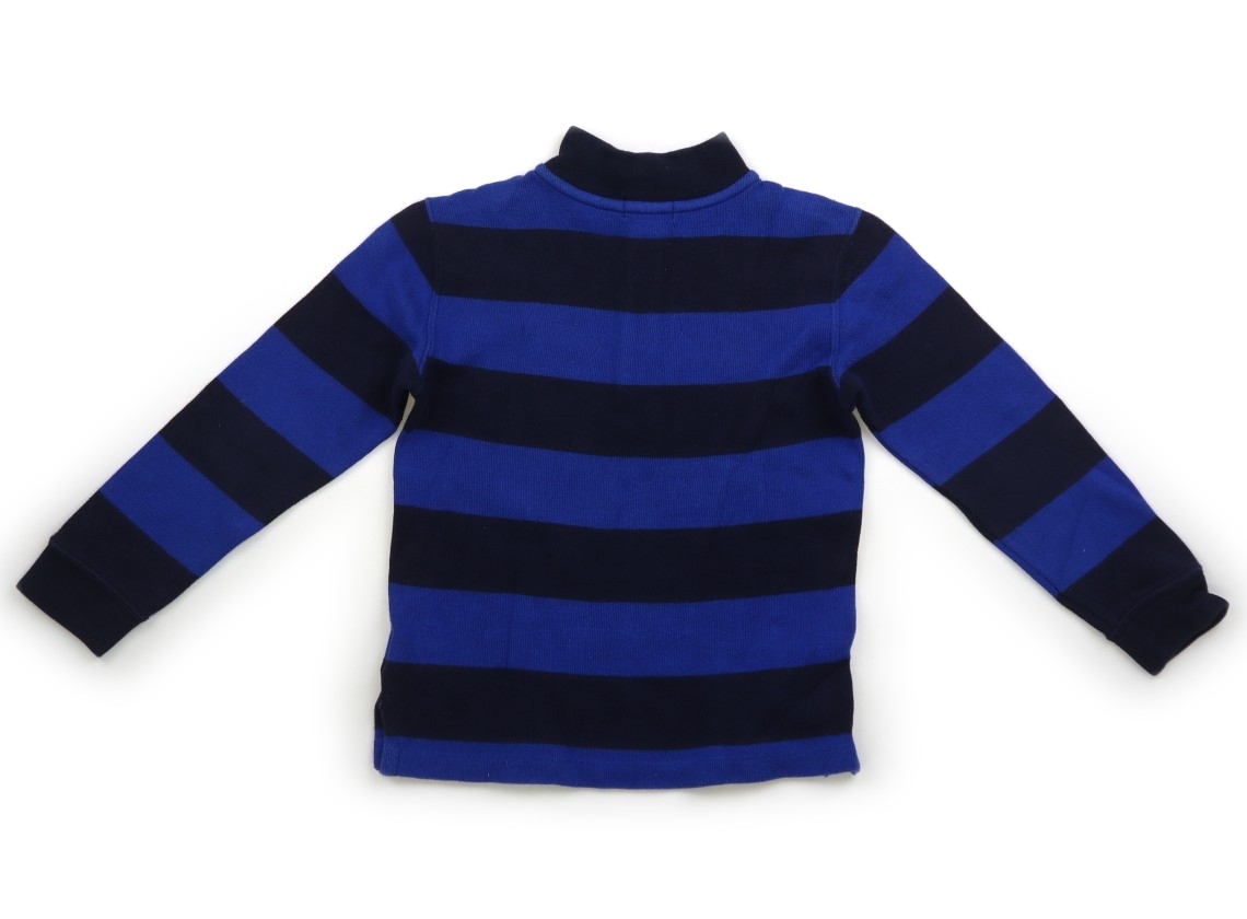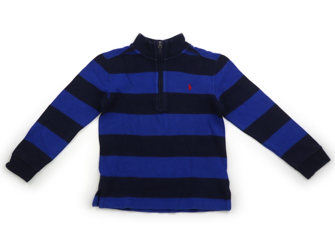 ハーフジップタイプ。コットンポリエステル素材の厚手のニットです。全体に色あせ・毛羽立ち、衿、ファスナー周りや袖リブに白っぽさが見られます。外遊び用にいかがでしょうか。