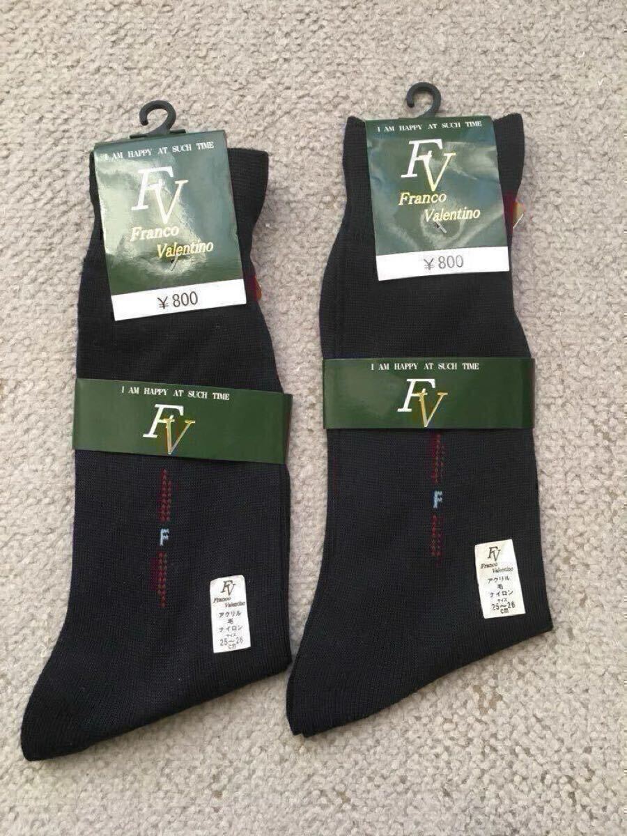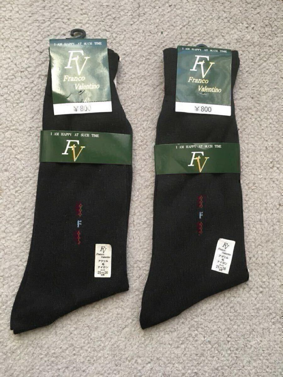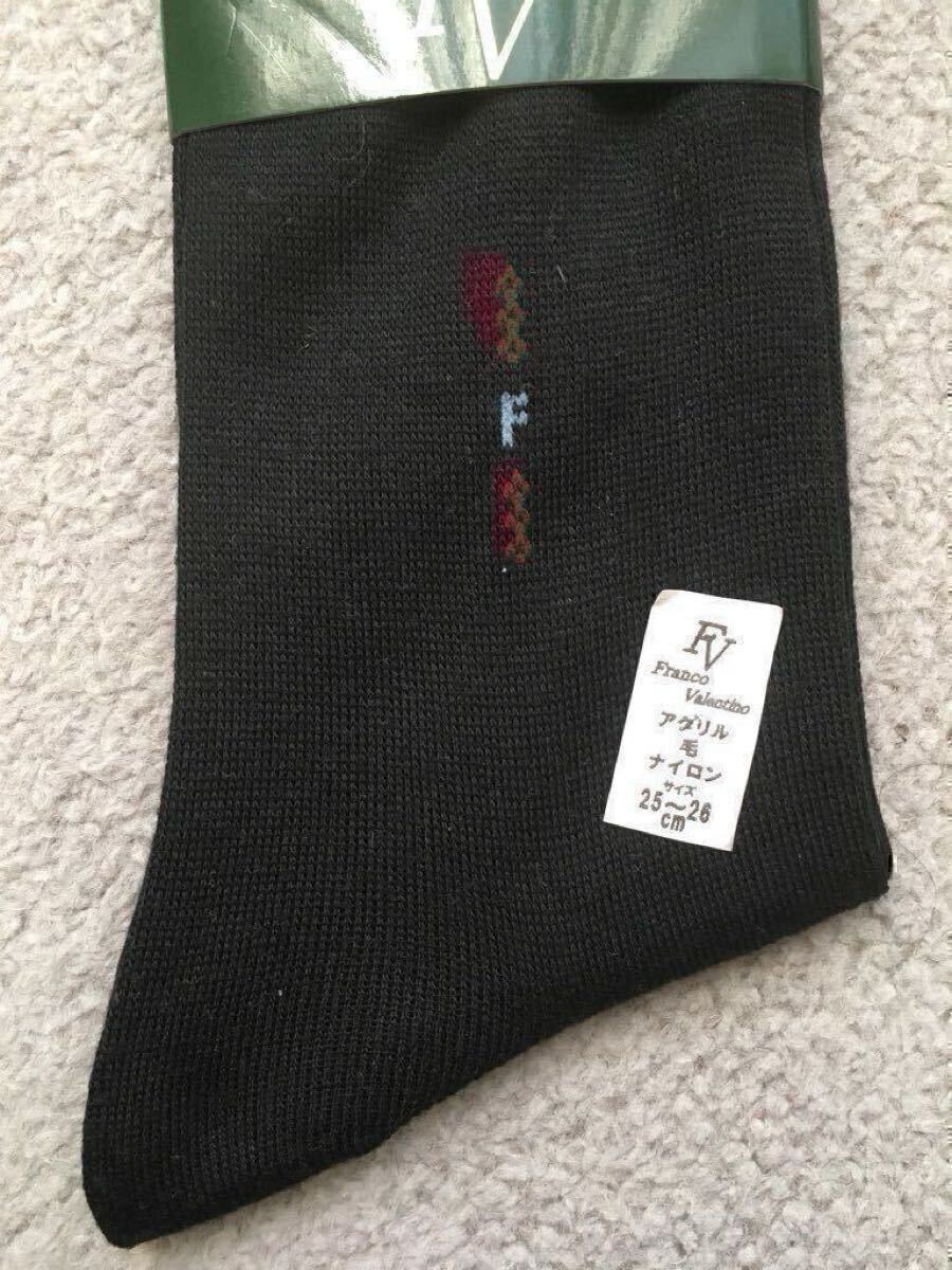 商品名 : FRANCO VALENTINOの紳士ソックス サイズ : 25~26㎝色 柄 : ブラックで同柄 2足・濃紺で同柄 2足 (写真参照)合 計足 数 : 4 足素 材 : アクリル・毛・ナイロン**** 未使用品 定価→ 1足 800円+消費税の品