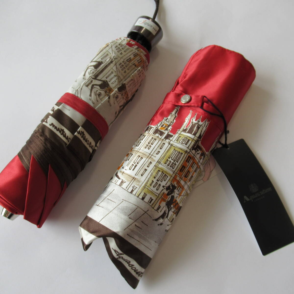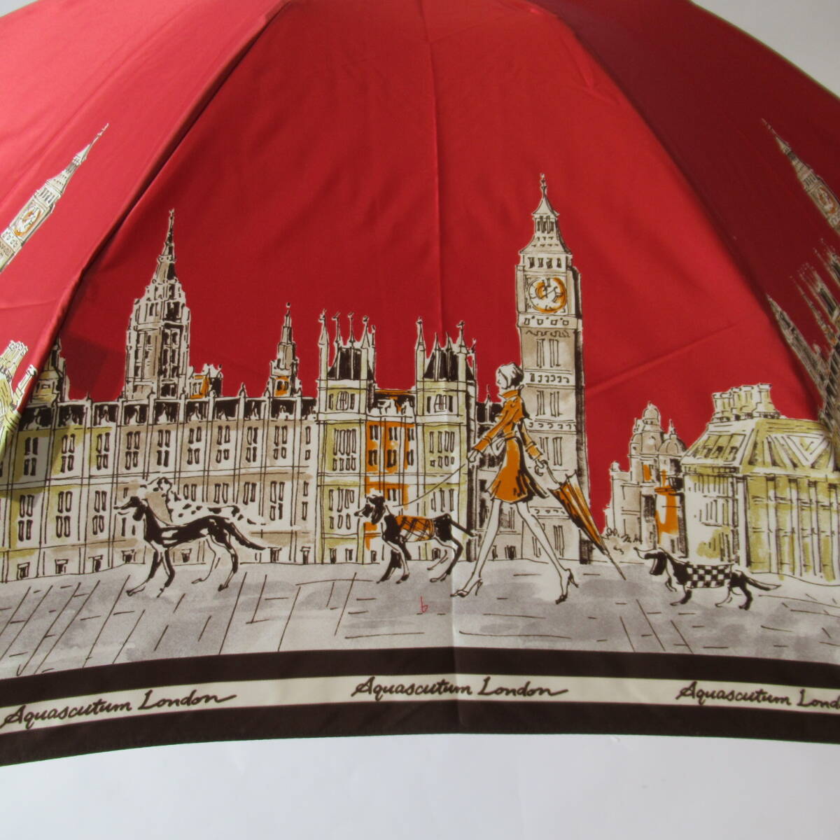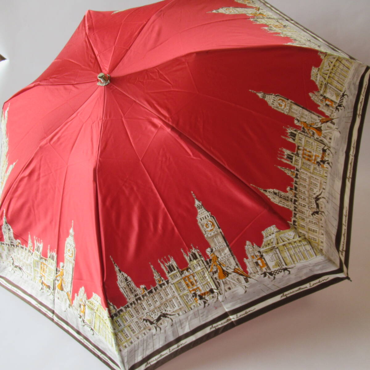 ■■202509即決■ Aquascutum アクアスキュータム新品レッド ロンドンガール柄折りたたみ 折り畳み傘 / 雨傘 No.2