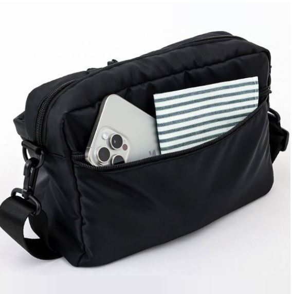季節問わずオールシーズン使えるシャカシャカした生地感の軽量ショルダーバッグです。荷物がたっぷり入るメインコンパートメントには、小物を整理できる2つの内ポケット、前面にはさっと取り出せる大きなフラップポケットが2つ、背面には大きなファスナー付きポケットと、全部で6つのスペースがあり、収納力はバツグン。バッグのアクセントにもなるロゴは本格刺繍でおしゃれ心をくすぐるデザインです。ショルダータイプなので両手が空き、ストラップの調節で斜め掛けや肩掛け、ボディバッグのようと、好きなスタイルで使えるのも魅力。ストラップを外してバッグインバッグとして使うことも可能です。通勤・通学はもちろん、ちょっとしたお出かけに、長く愛用していただける使い勝手のよいバッグです。