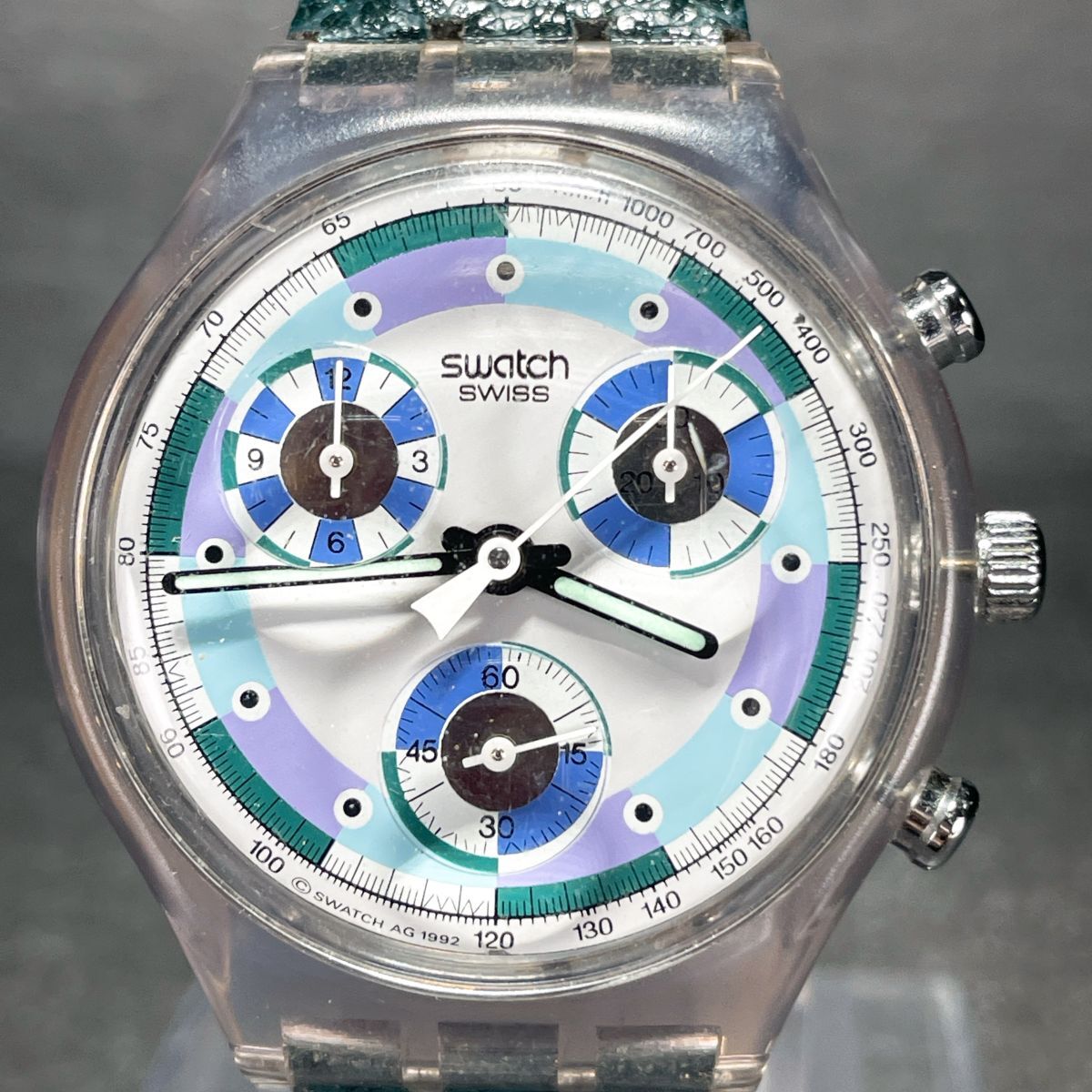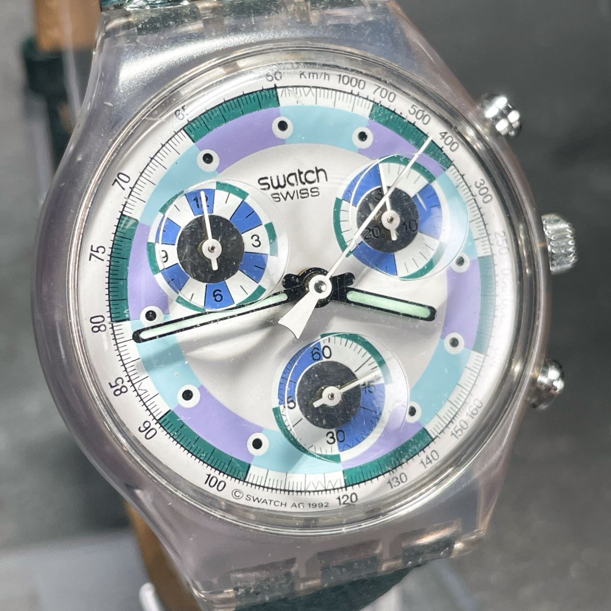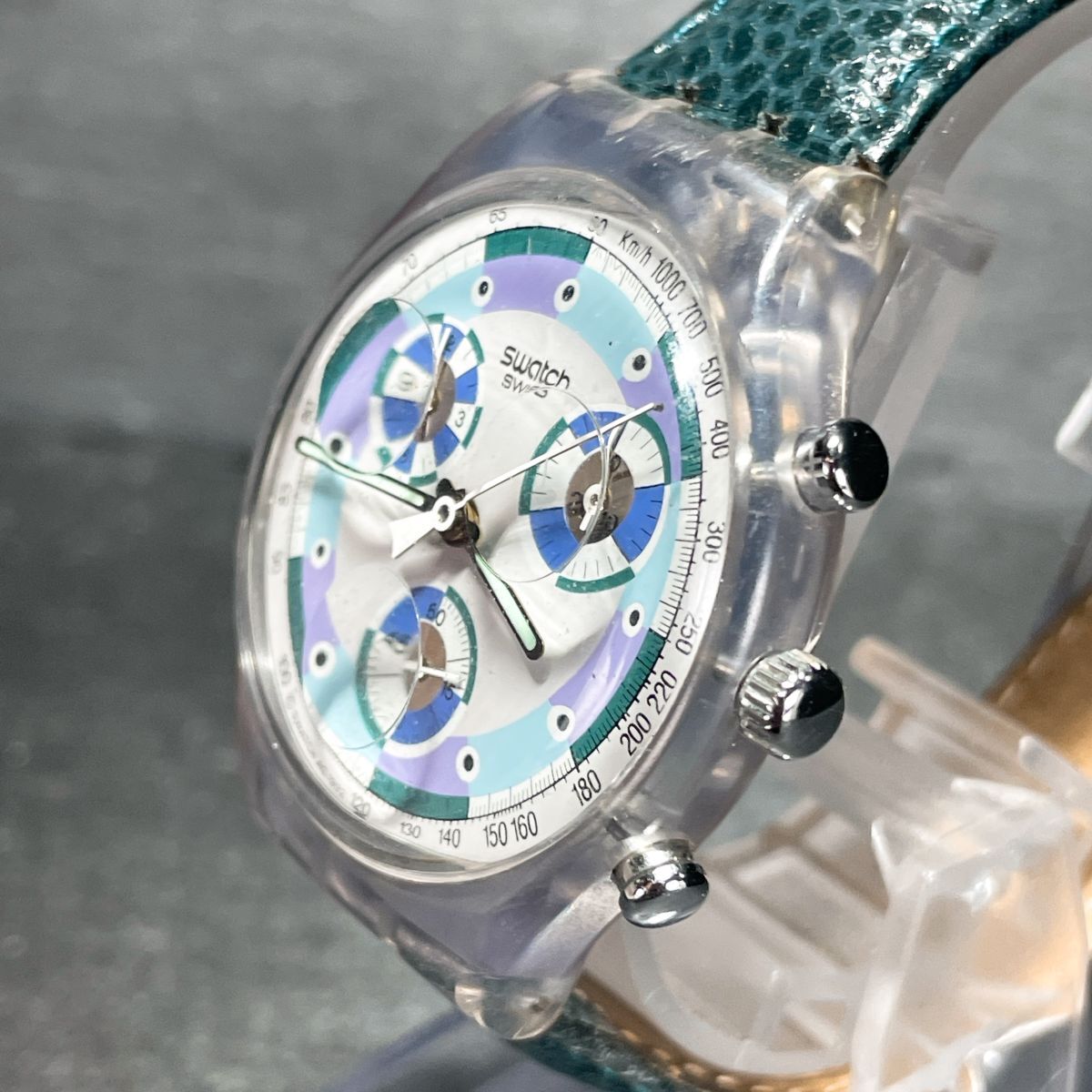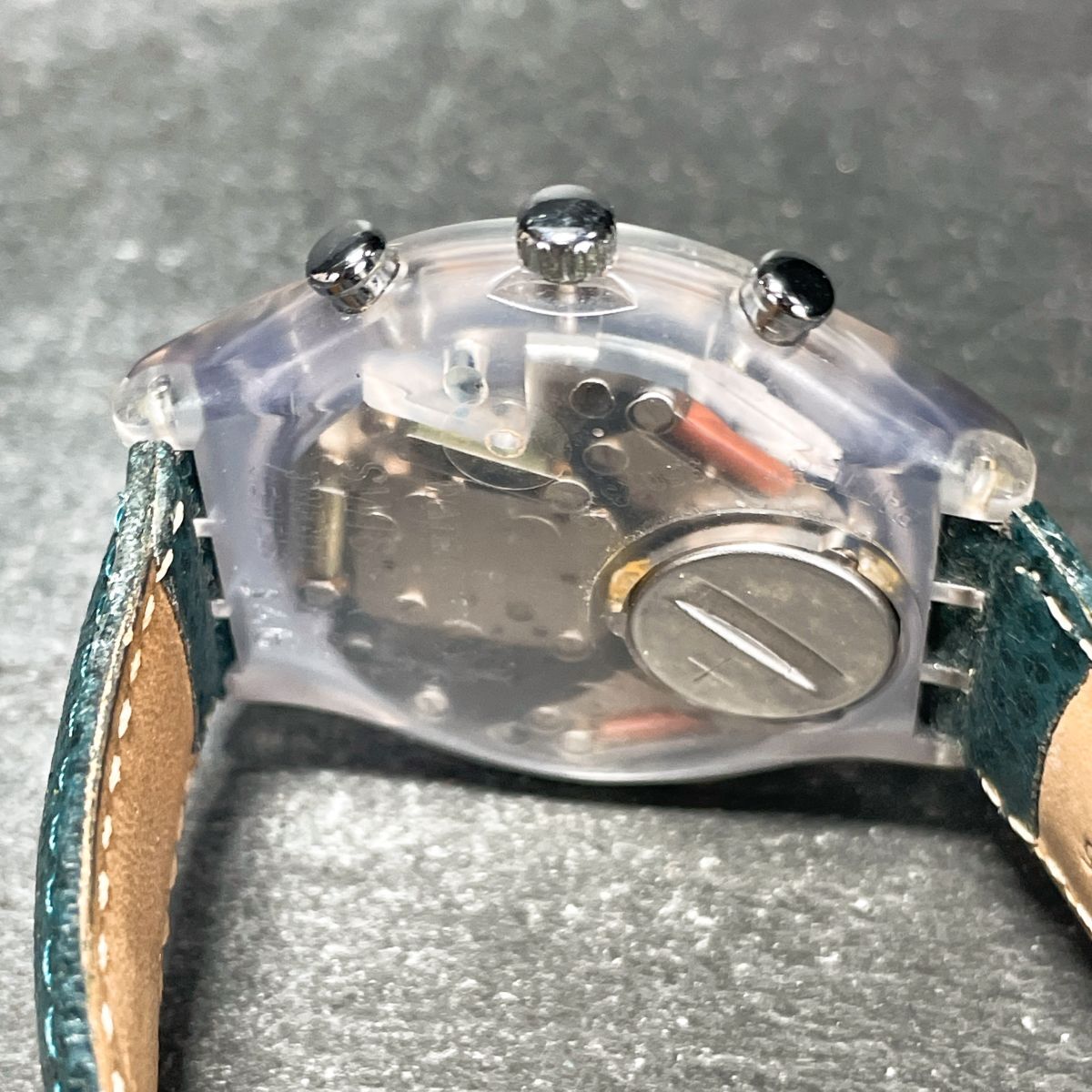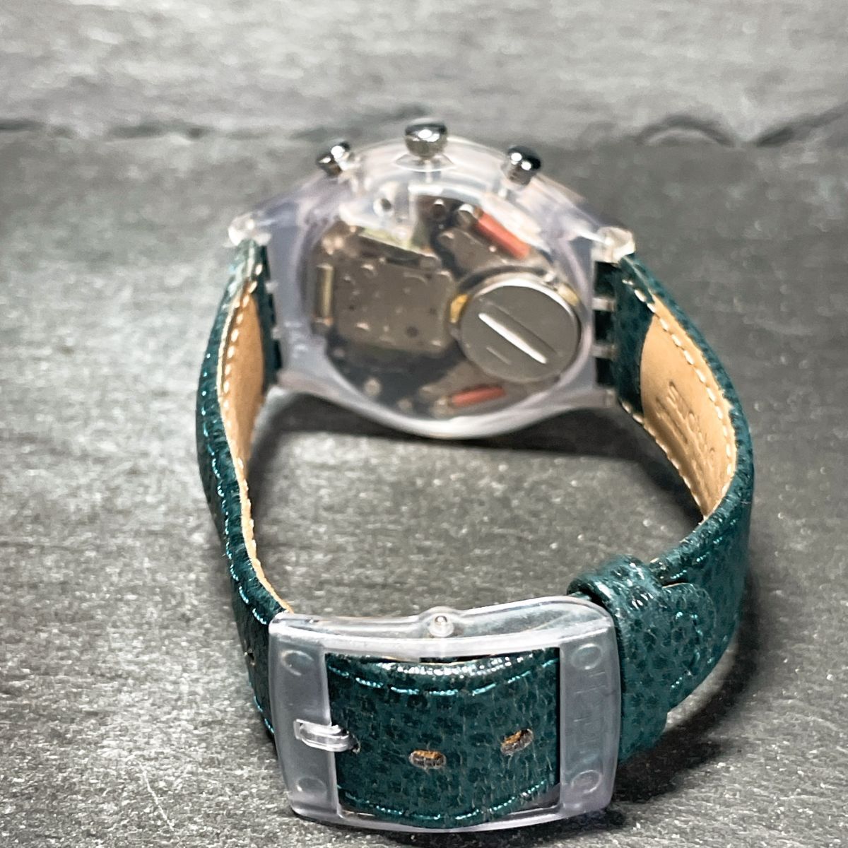 美品 Swatch スウォッチ CHRONO クロノ GREENTIC SCV100 腕時計 アナログ クオーツ スケルトン レザーバンド グリーン ラウンド