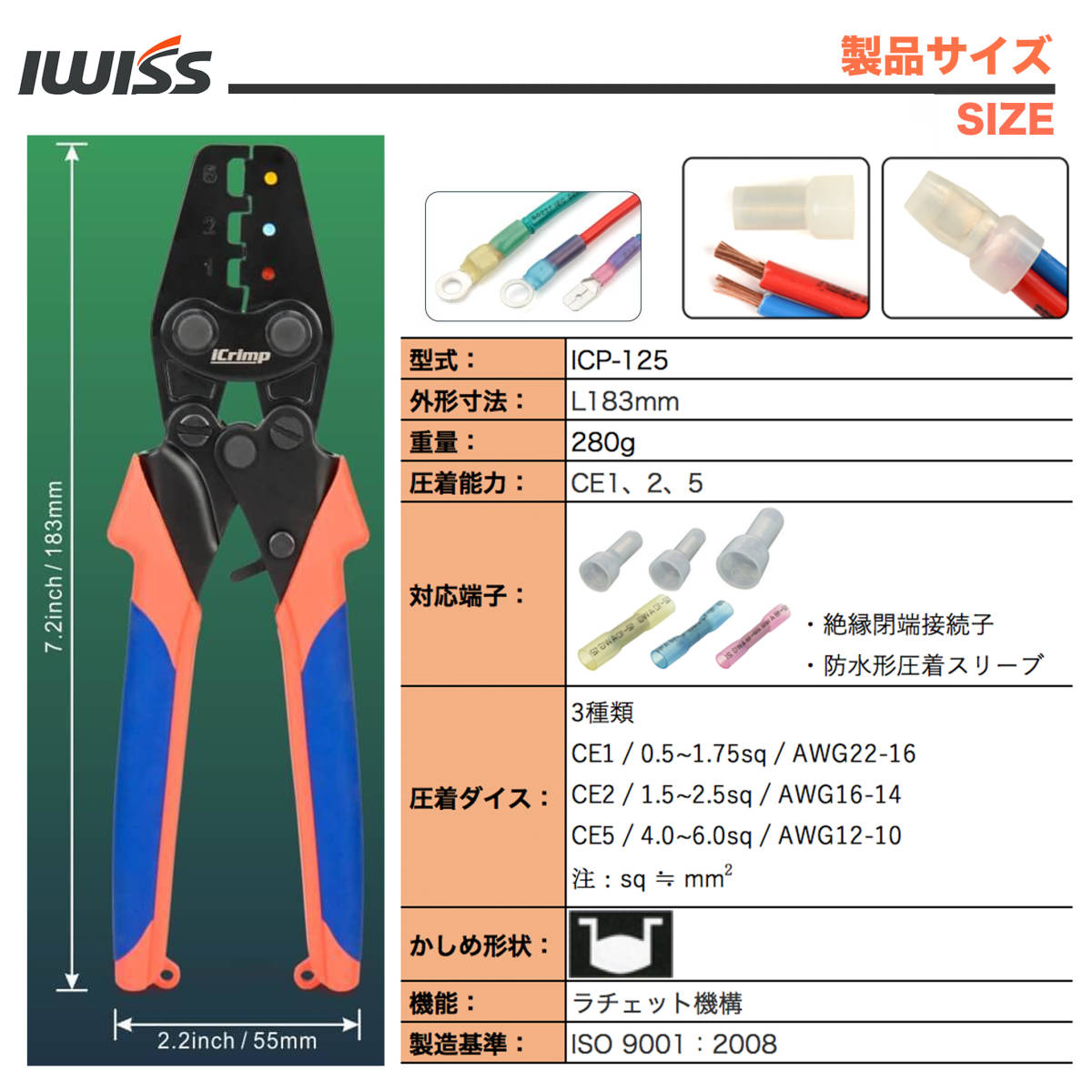 ★☆正規品☆ 絶縁被覆付閉端接続子 CE1/2/5 熱収縮タイプ防水形圧着端子用 圧着工具 圧着ペンチ ラチェット式 ICP-125★ | |||