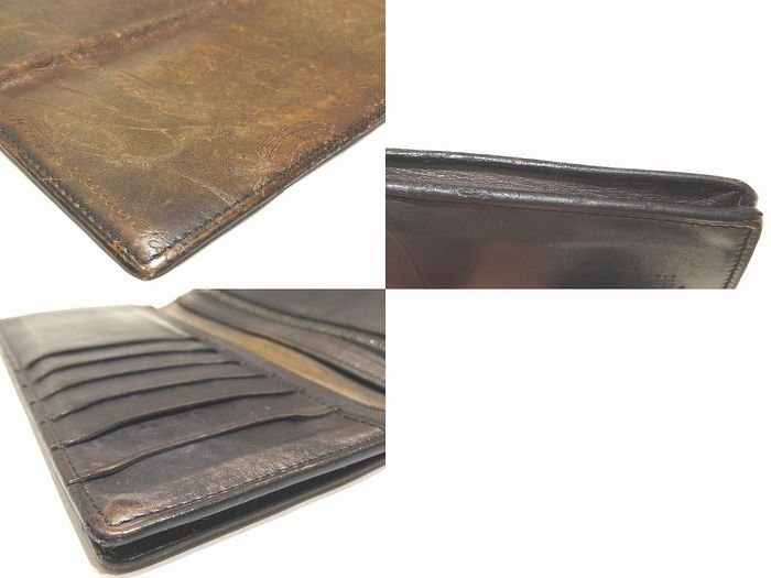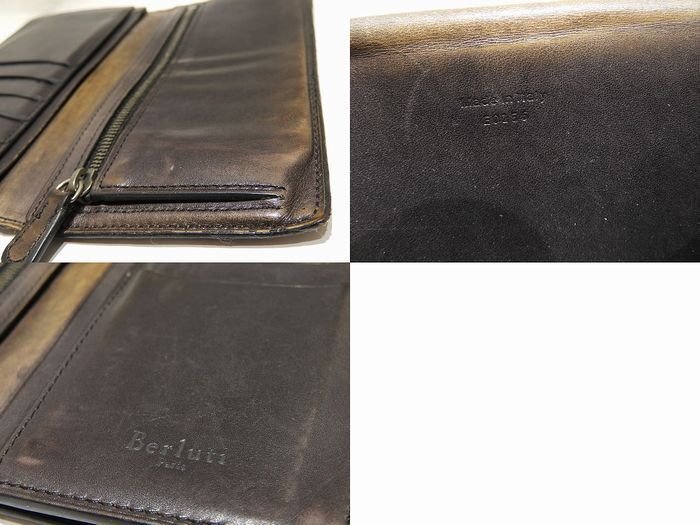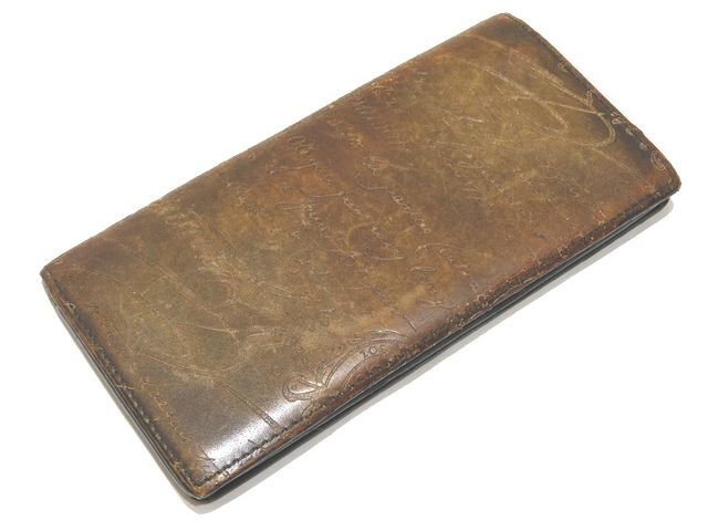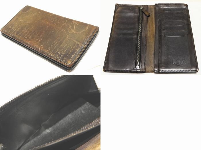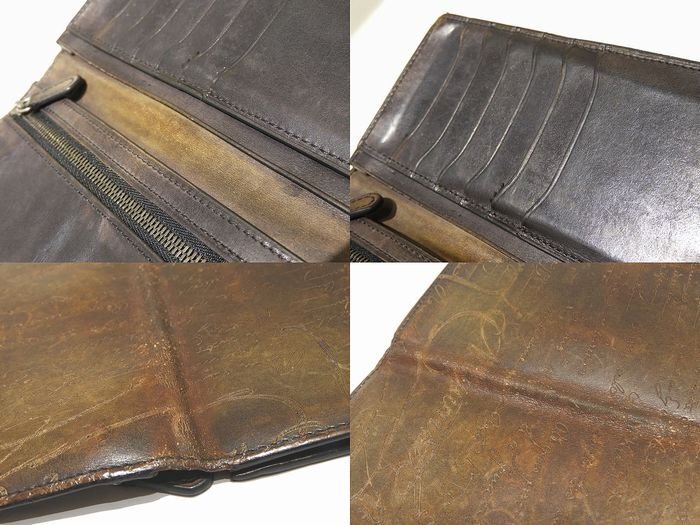 Berluti ベルルッティ 2つ折り 長財布 ☆ カリグラフィー カーキ系 レザー メンズ 総柄 小銭入れ付き ▼7I