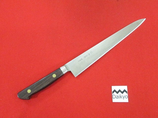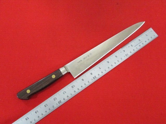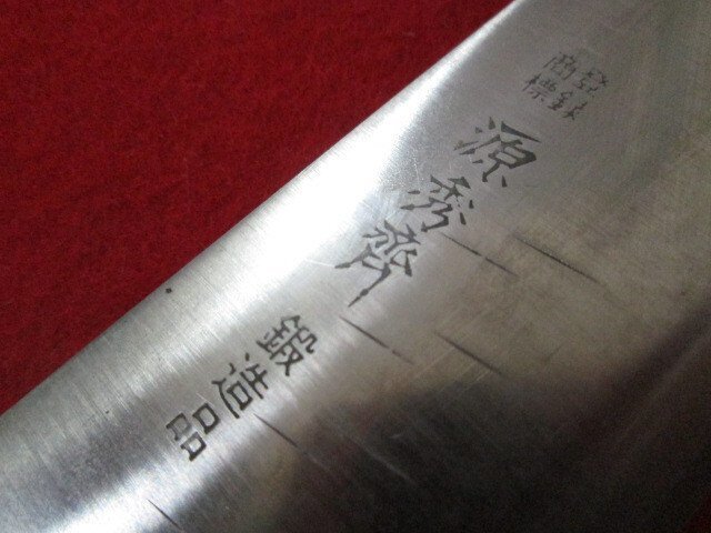 R361■源秀齋 / 筋引 包丁 鍛造品 口金付 / 240mm /// 洋包丁 肉切包丁 ツバ付 手造品 手づくり品 料理包丁 / 未使用