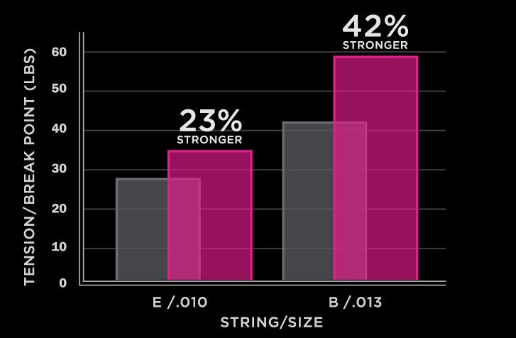 従来のニッケルワウンド弦に比べて、チューニング安定性が向上。チューニングにかかる時間が短縮し、かつチューニングが合った状態をより長時間維持。