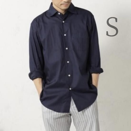 メンズ レギュラーフィット ワイドカラー S 紺 シャツ