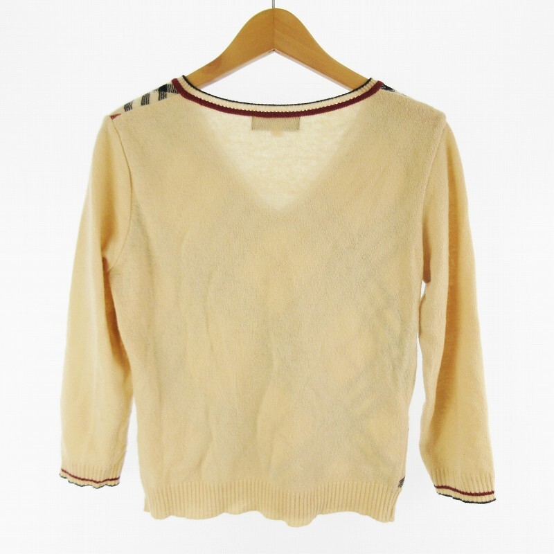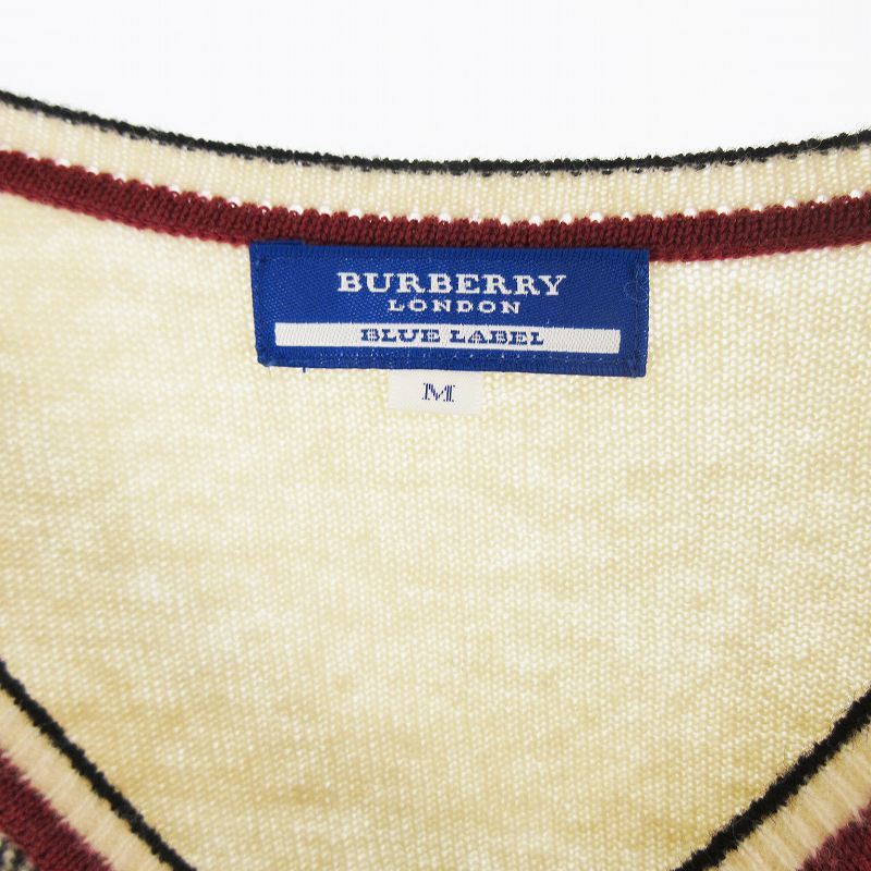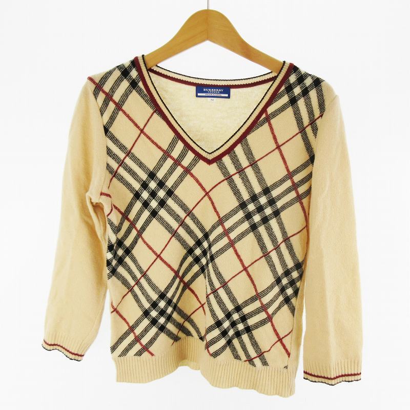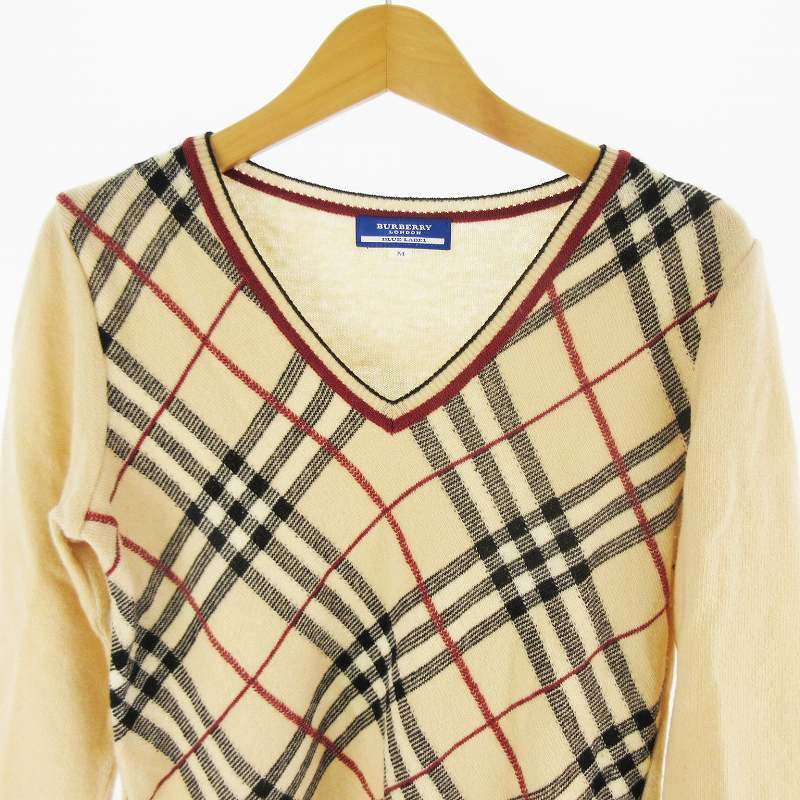 バーバリーブルーレーベル BURBERRY BLUE LABEL ニット セーター Vネック ノバチェック柄 ブラック ベージュ ウール M 三陽商会 トップス レディース