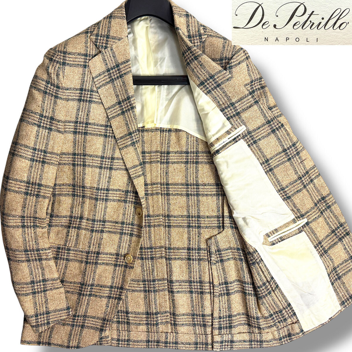 J7245 新品 デペトリロ Posillipo チェック柄ツイードジャケット ブラウン 48 De Petrillo