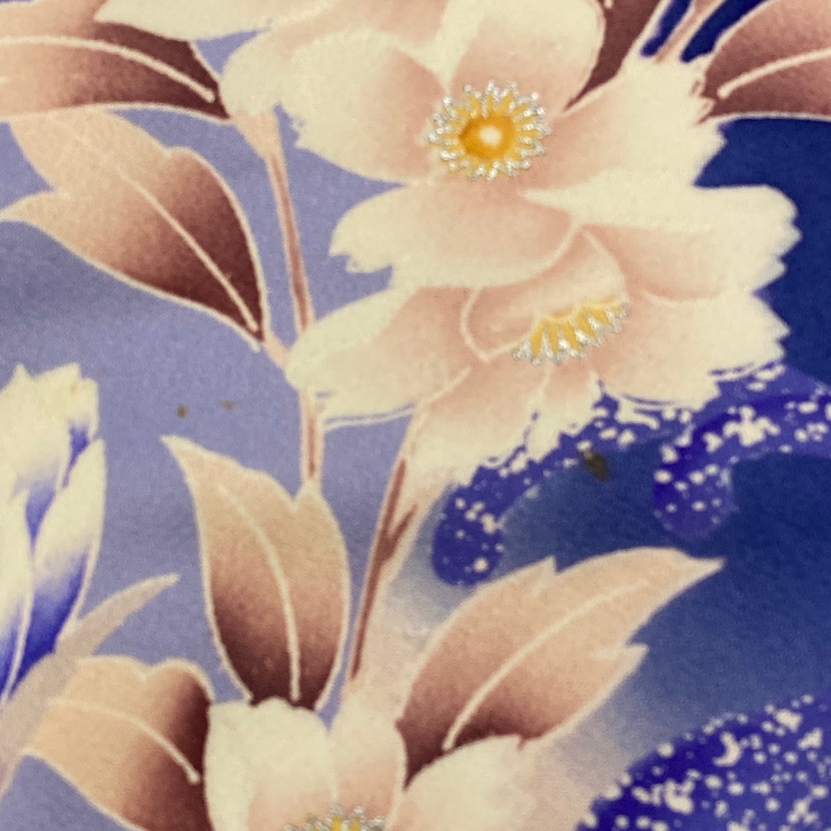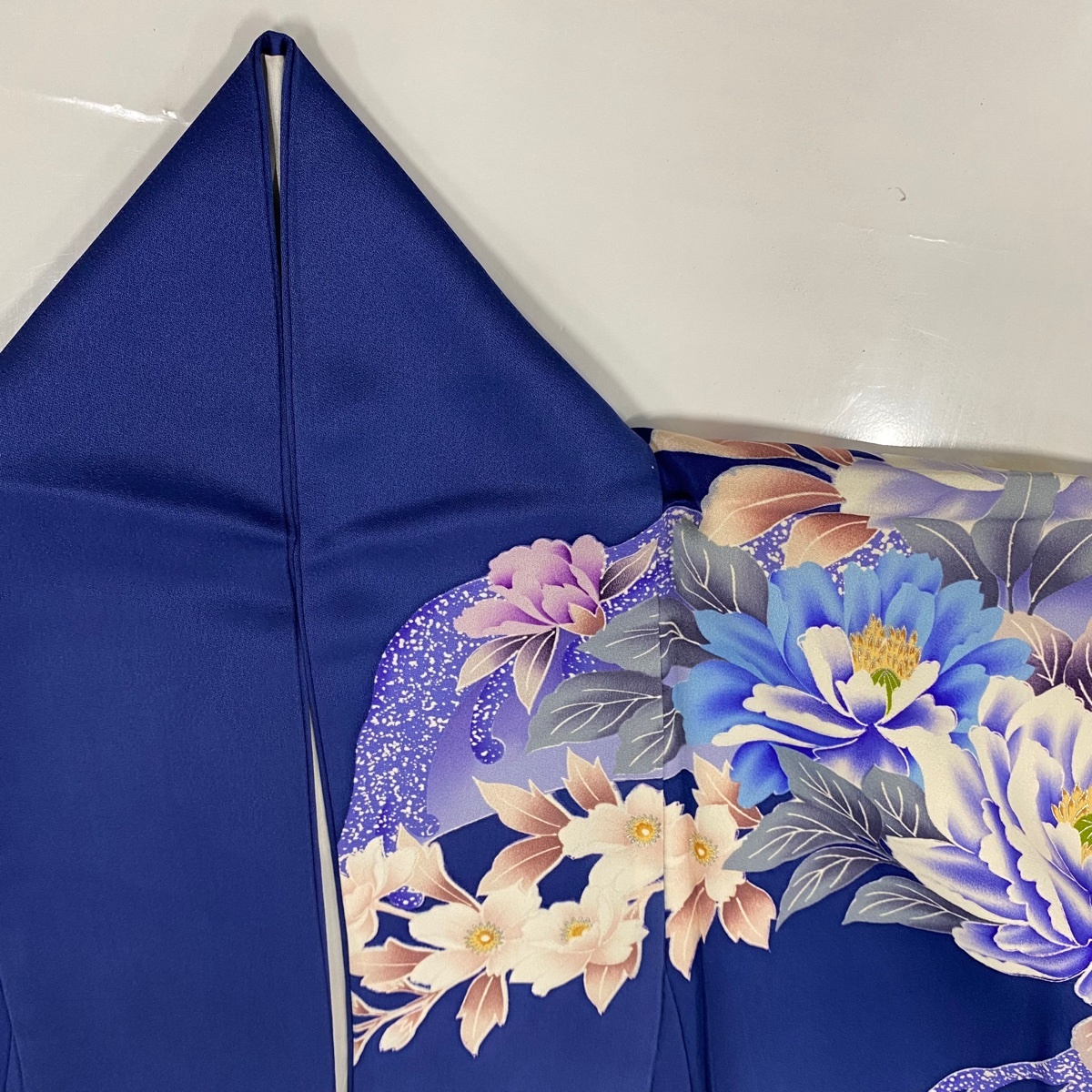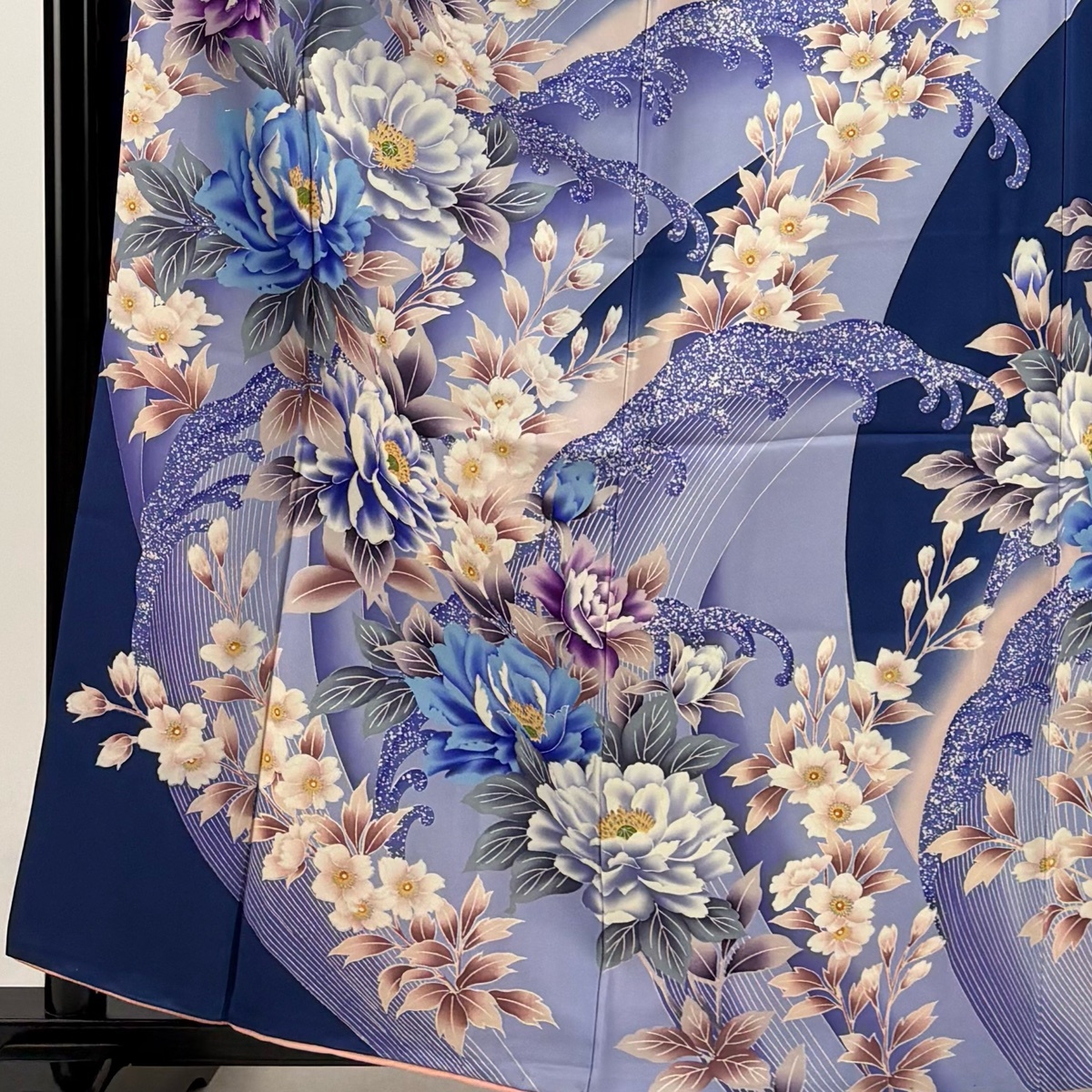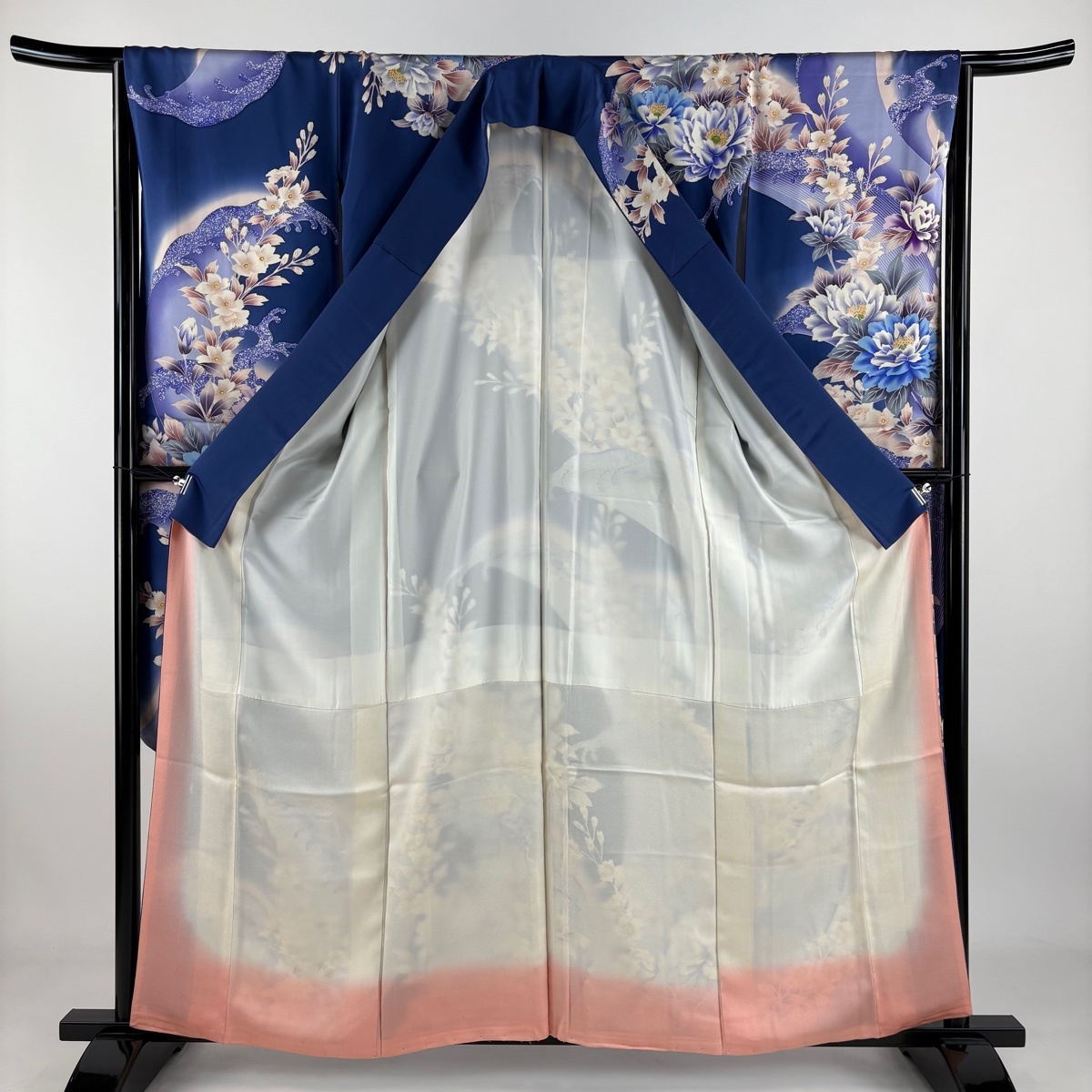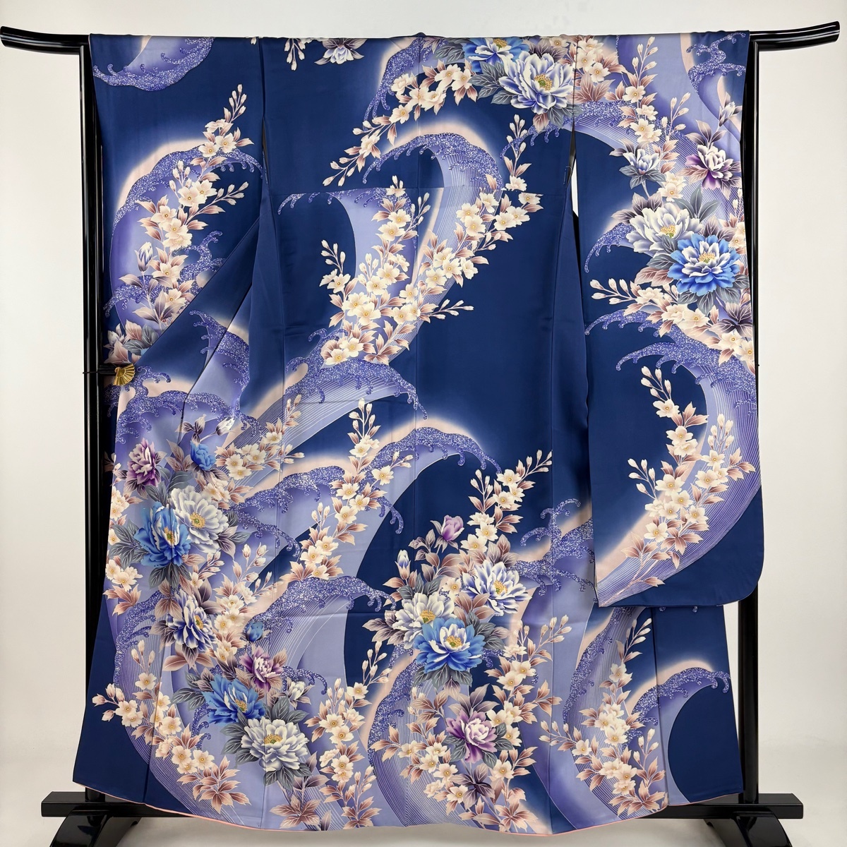 | 振袖 美品 秀品 草花 波頭 銀彩 ぼかし 紺色 袷 身丈158 裄丈65 M 正絹 【中古】 |