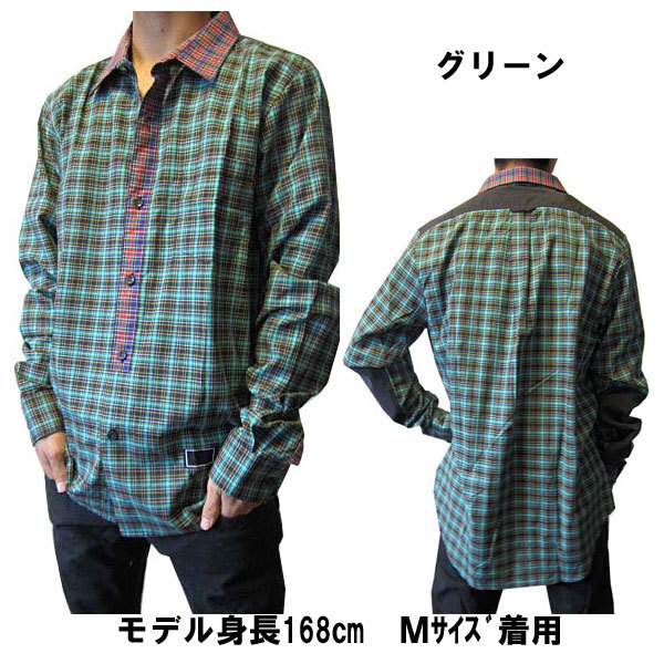 FRESHJIVE(フレシュジャイブ)MINIS スリムフィットのチェックシャツ グリーン(L)です。 ■素材 コットン100% ■サイズ 身幅約58cmX着丈約79cmX袖丈70cm ■特徴 スリムフィットのチェックシャツです。色違いのチェック生地を襟と前立て部分に使用した長袖シャツ!部分的ににアクセントとしてナイロン素材を採用。 FRESHJIVEならではのセンス・こだわりが感じられるシャツアイテムです♪ モデル身長168cm 56kg Mサイズ着用。 | ||||||