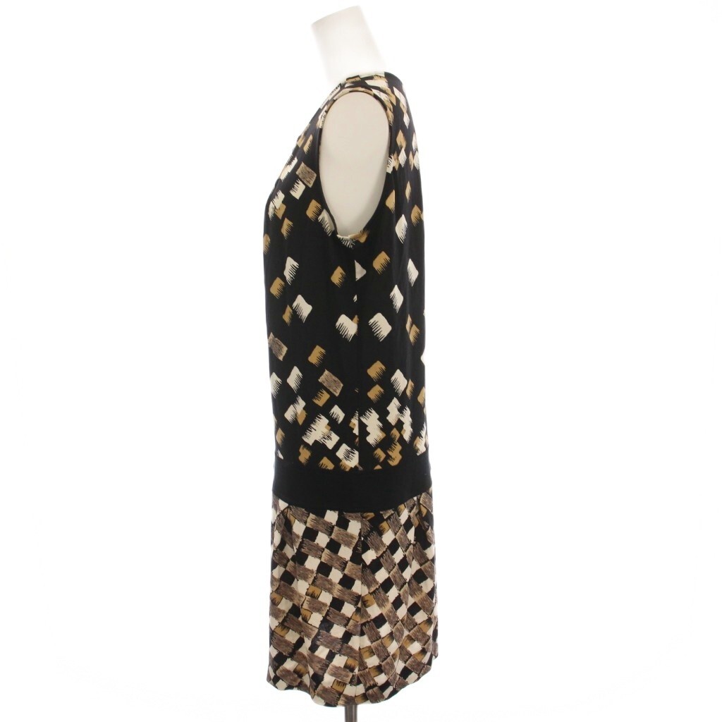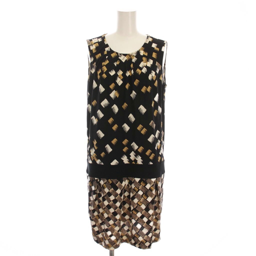 ダイアンフォンファステンバーグ DIANE von FURSTENBERG ノースリーブ ワンピース ミニ 総柄 シルク 6 黒 ベージュ /YM レディース