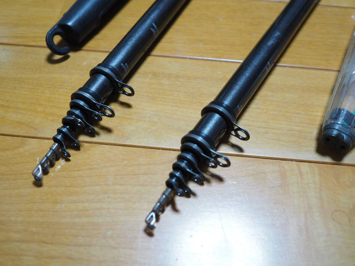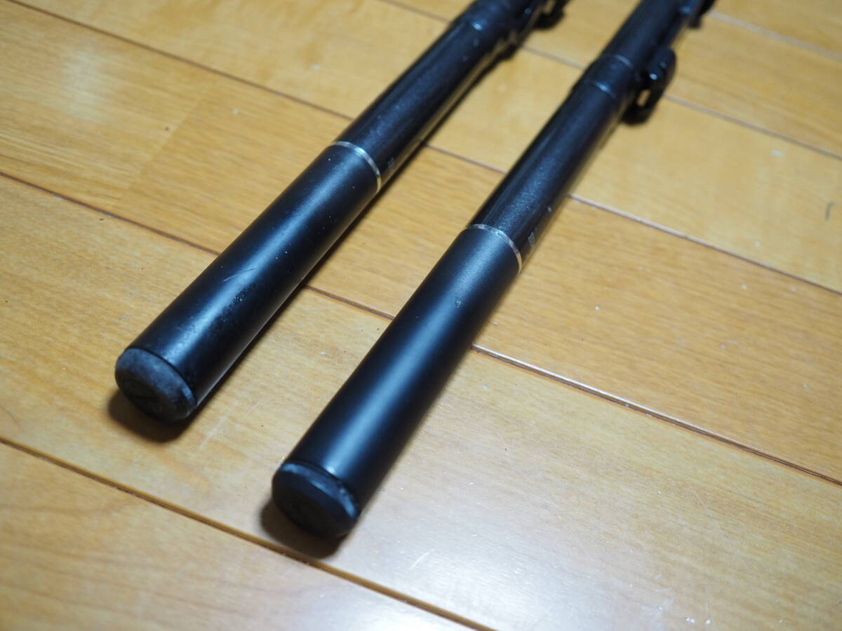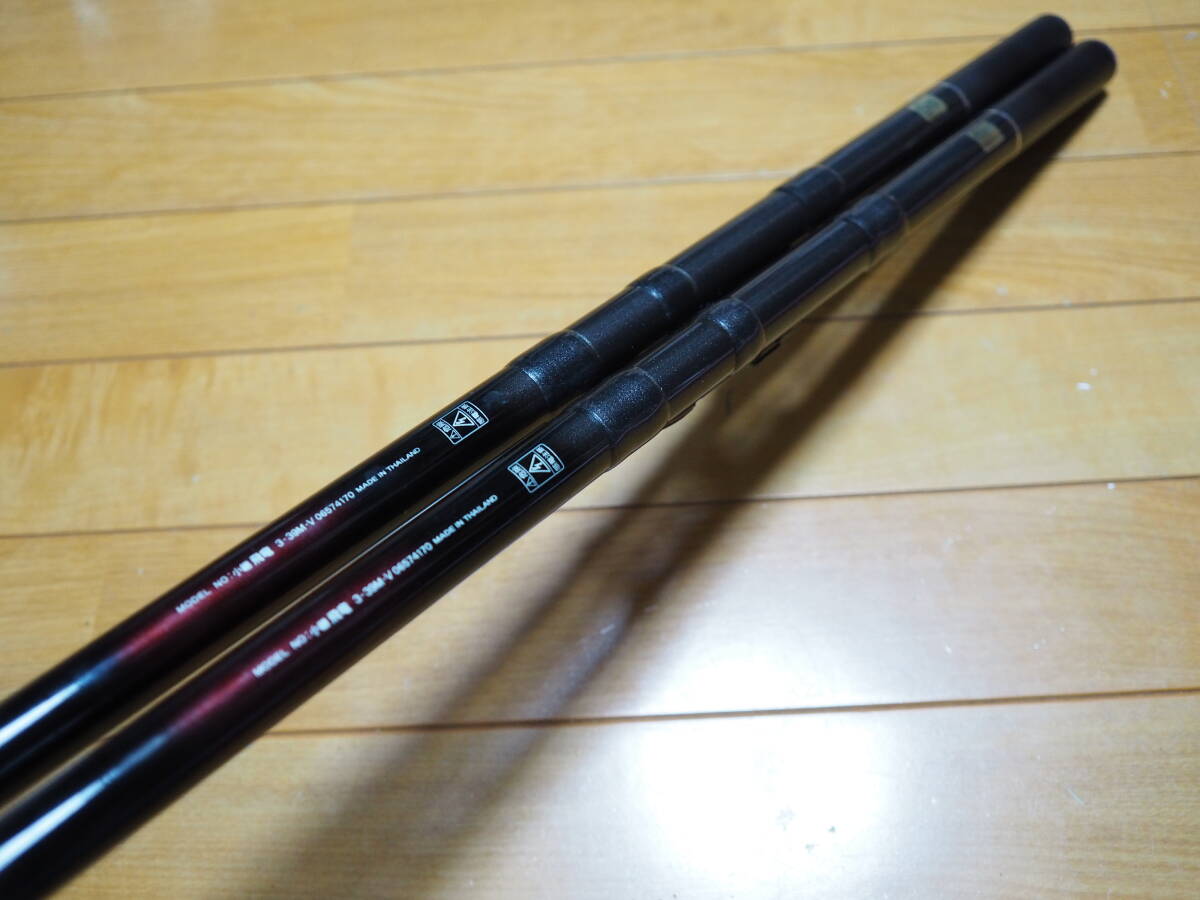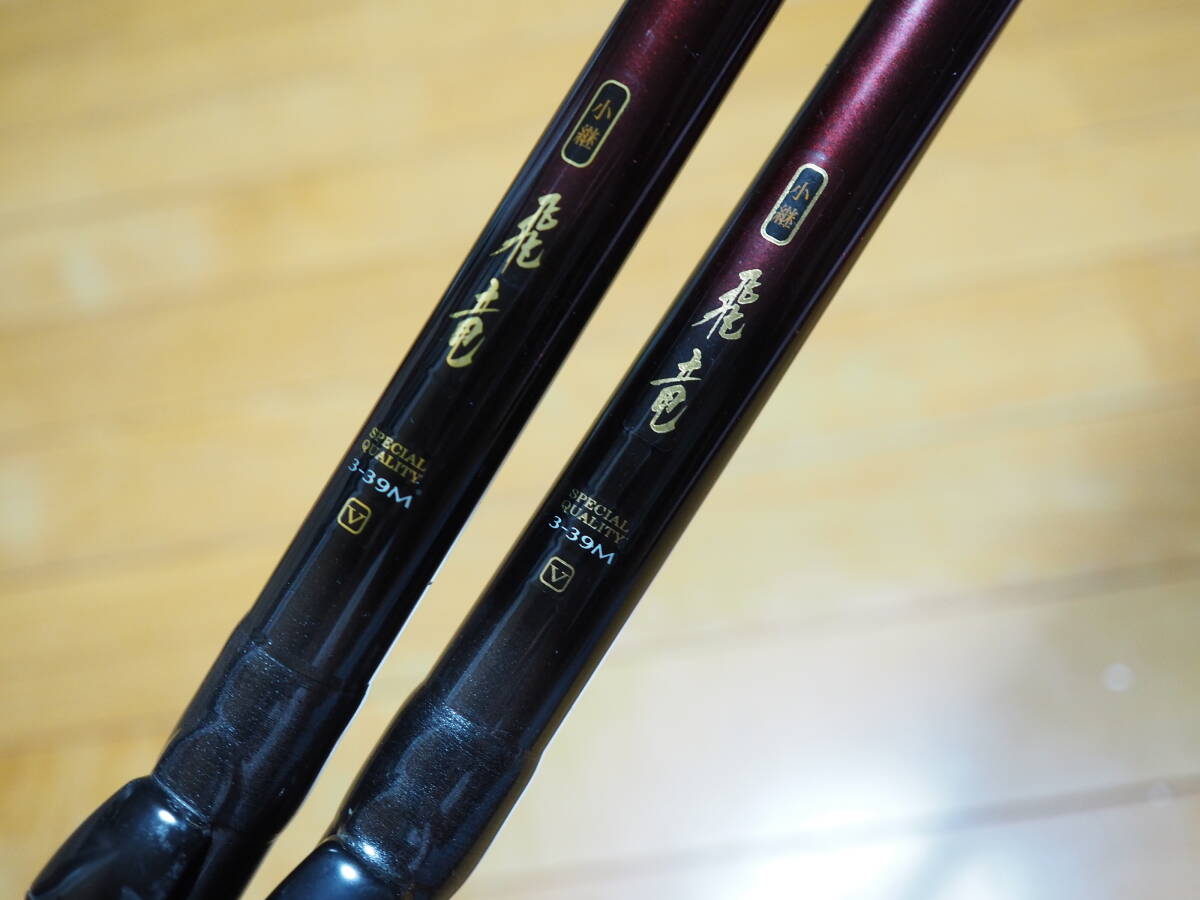 傷もほぼございません。穂先の詰め等もございません。抜群に良いコンディションです。 全長3.9m 同じ番手の小傷が有る物もセットでお付け致します。 要するに「ダイワ 小継 飛竜 3-39M-V」×2本セットになります。 |