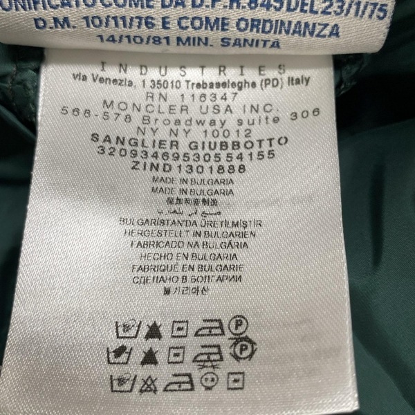 モンクレール MONCLER ダウンジャケット サイズ0 XS SANGLIER(サングリア) ダークグリーン レディース 長袖/冬 ジャケット