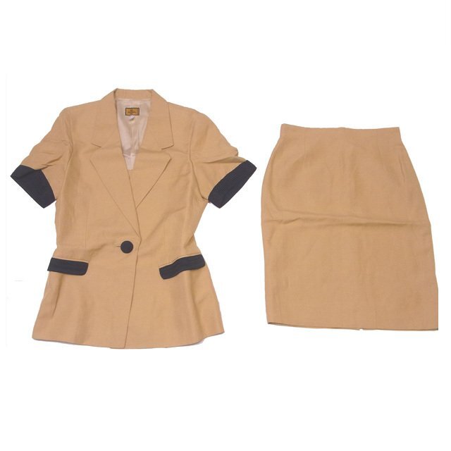 | 備考 | ジャケット表記サイズ:38(38/8/40/12/42)着丈:約67cm肩幅:約40cm身幅(胸下):約48cm袖:約25cmスカート表記サイズ:38(38/8/40/12/42)ウエスト幅:約34.5cm総丈:約56cmスリット:約16cm |