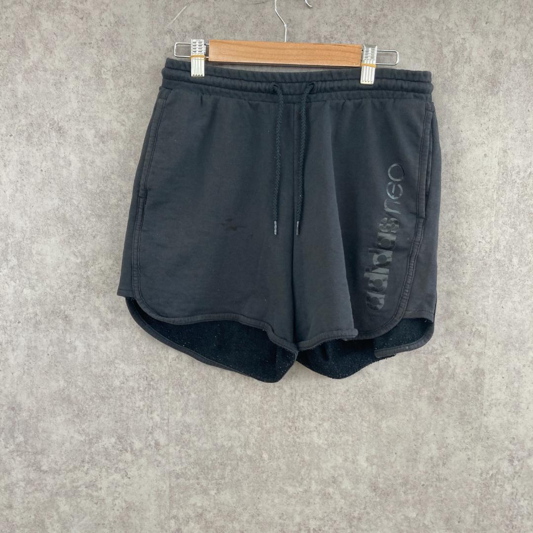 アディダスネオ(M)ショートパンツ*ウエスト紐*サイドロゴ*トレーニング*黒