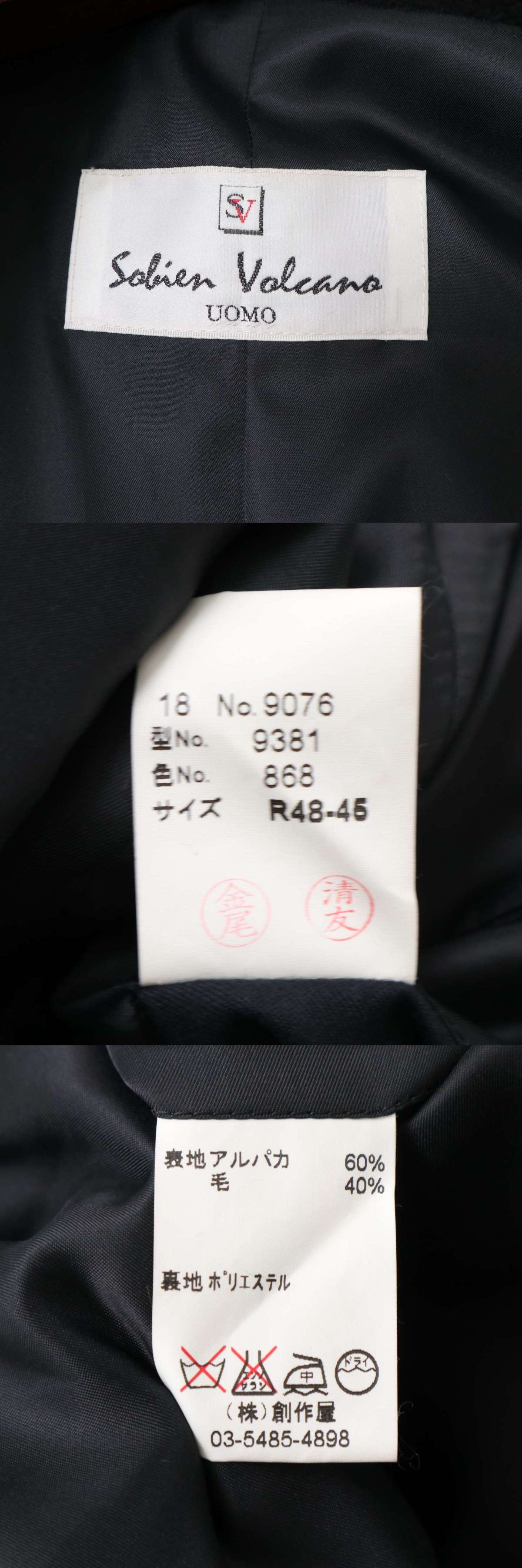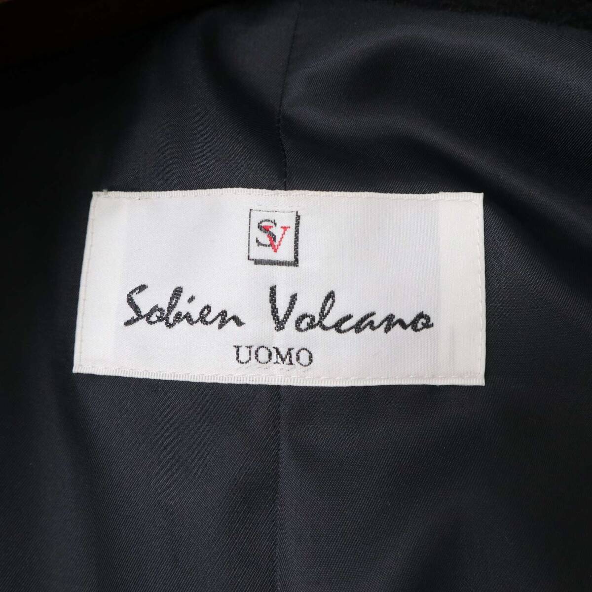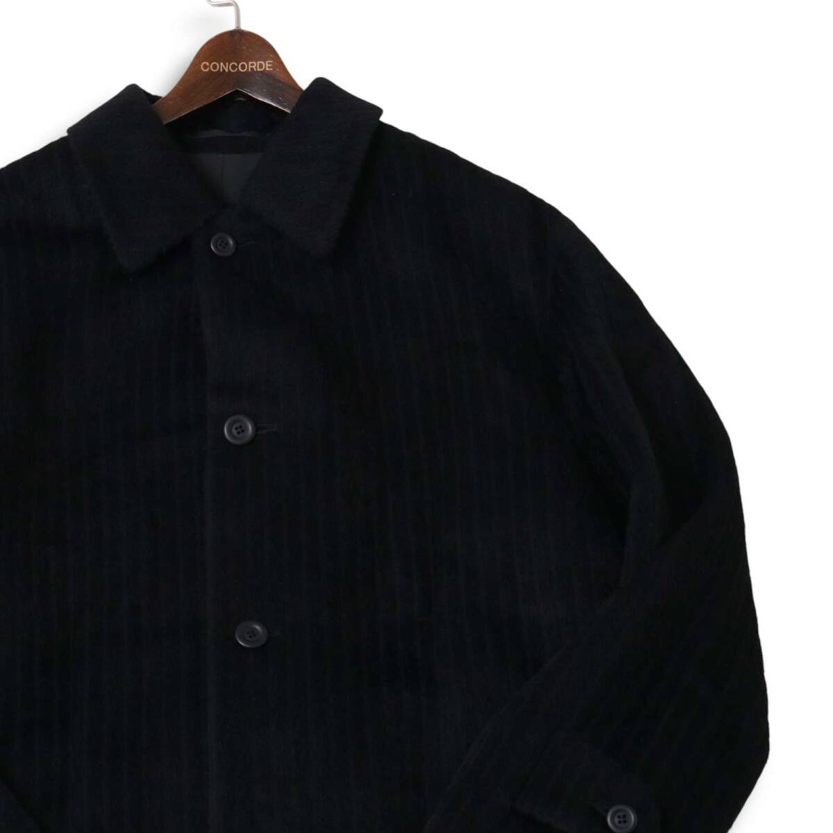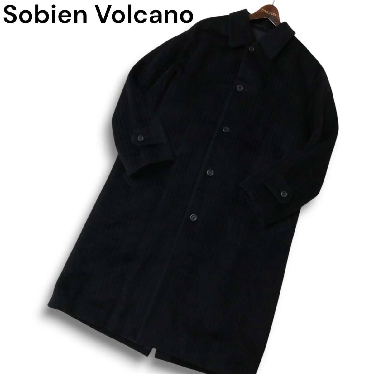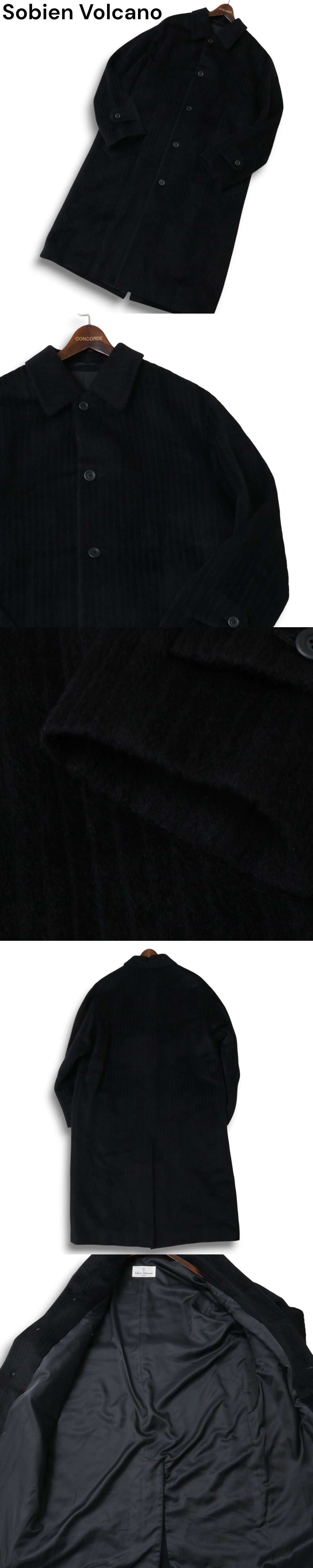Sobien Volcano UOMO メンズブランド 秋冬 ウール アルパカ★ ストライプ ロング ステンカラー コート Sz.R48-45 メンズ 黒