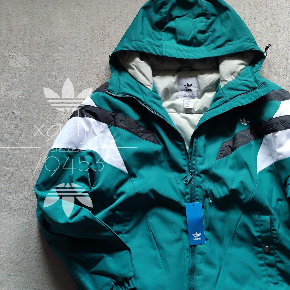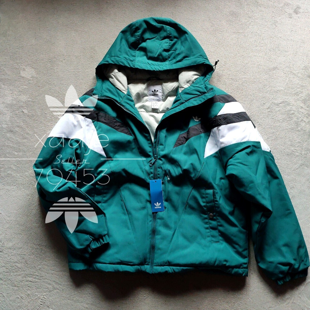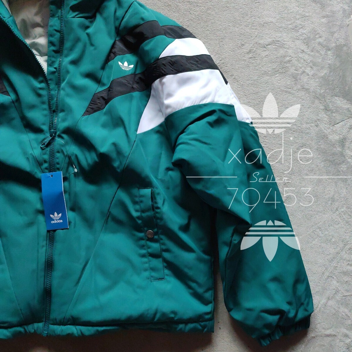 新品 正規品 adidas originals アディダス オリジナルス 中綿 パファー ジャケット 緑 グリーン系 黒 白 刺繍 定価22000円 L