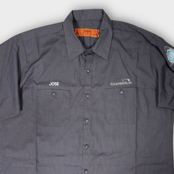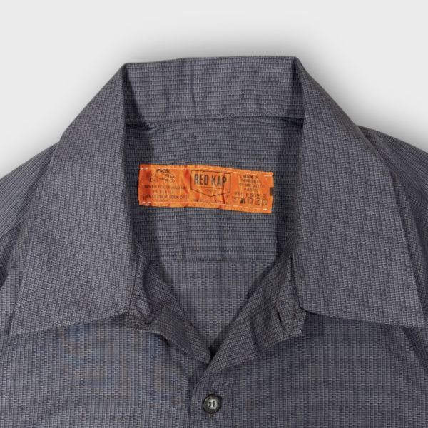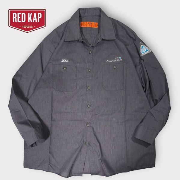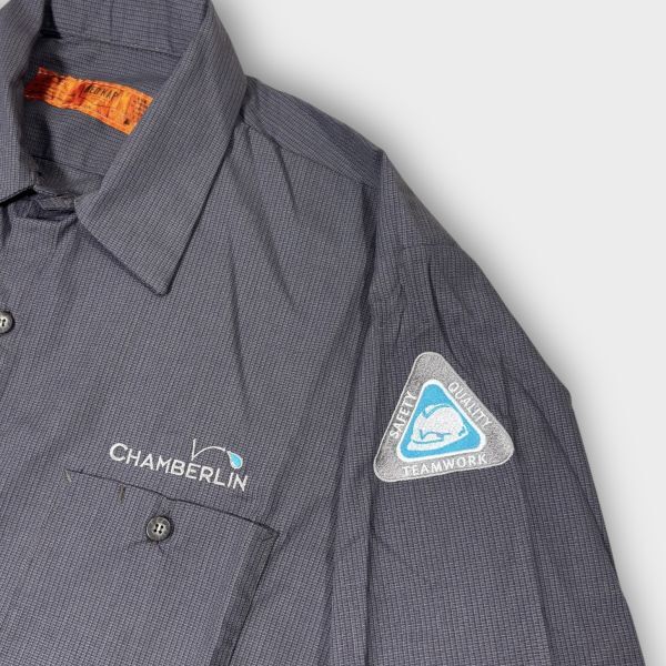 ★CHAMBERINロゴ刺繍&袖ワッペン★RED KAP長袖ワークシャツ sizeXL レッドキャップ 古着 クリーニング プレス済み 2518