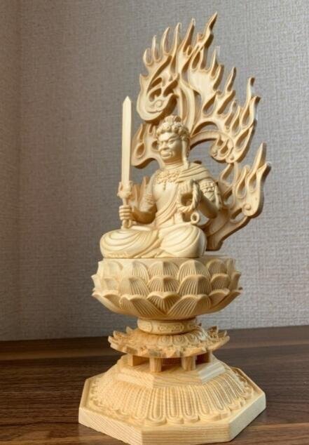 不動明王 木彫 仏像 不動明王像 檜木 高約28cm zhw0116