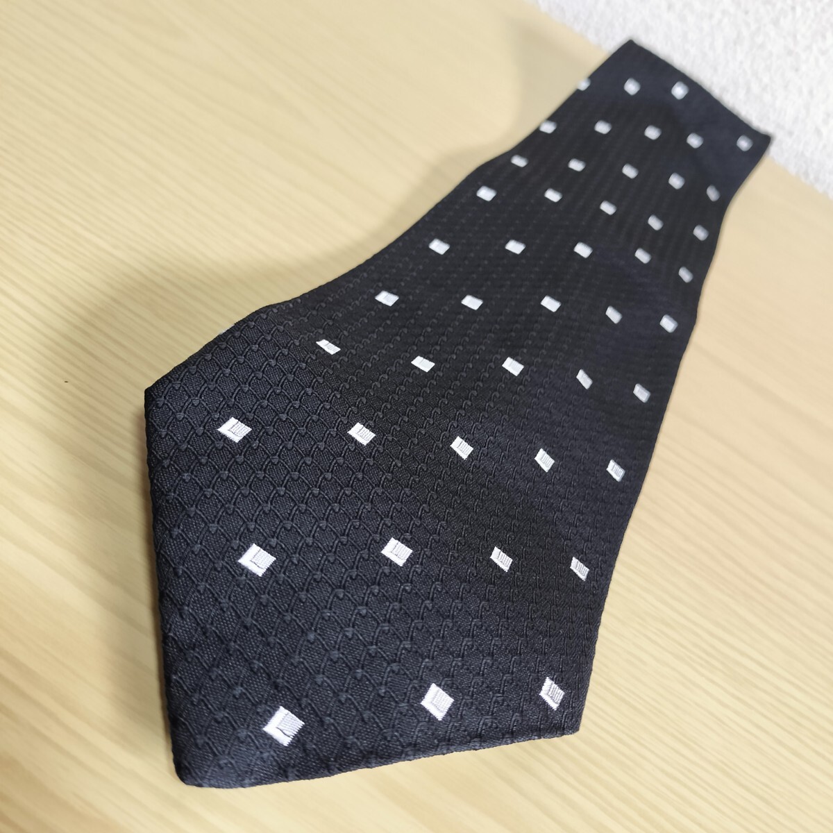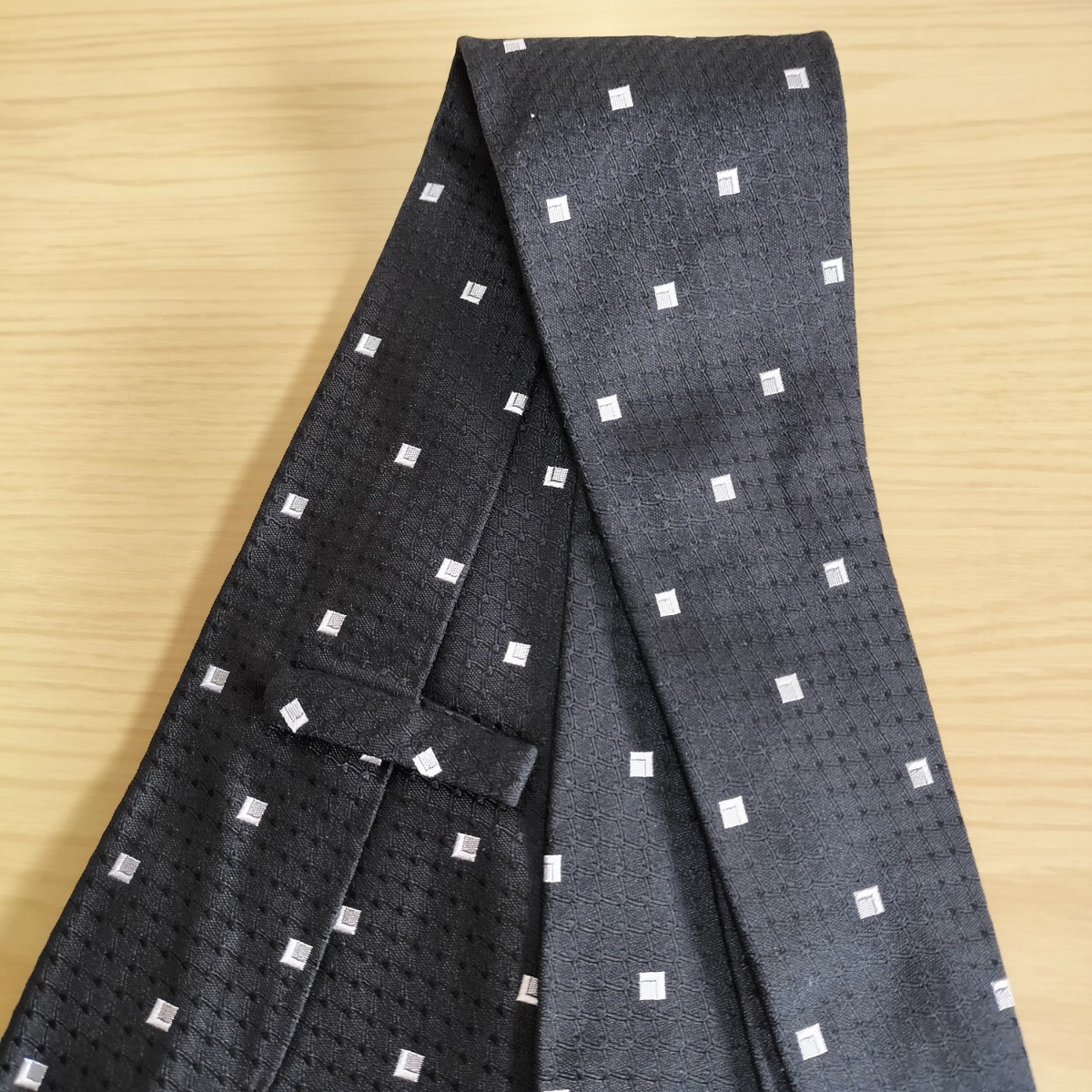黒シルバーミクロスクエア網ドットネクタイ