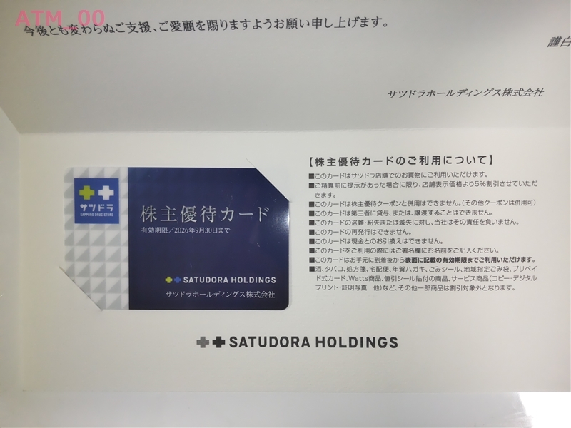 サツドラホールディングス株式会社より「株主様ご優待カード」です